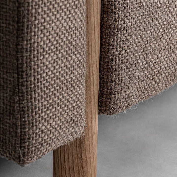 Materiali: poliestere beige screziato, legno di pino massello, schiuma