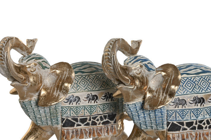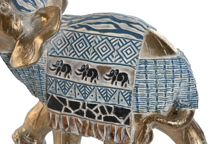 Questo set di due elefanti decorativi è perfetto per chi desidera aggiungere un tocco di fascino esotico alla propria casa. I due elefanti sono realizzati in resina decorata con dettagli dorati e blu, che richiamano lo stile etnico tipico dell’arte indiana. Possono essere posizionati in diversi ambienti, come il soggiorno o l'ingresso, per arricchire l’arredo con un elemento decorativo unico e simbolico. Le finiture curate e la combinazione dei colori rendono questo set di statuette etniche ideale per aggiungere un tocco di personalità e cultura ai tuoi spazi. Scopri questa e altre statue decorative disponibili nel nostro catalogo online.