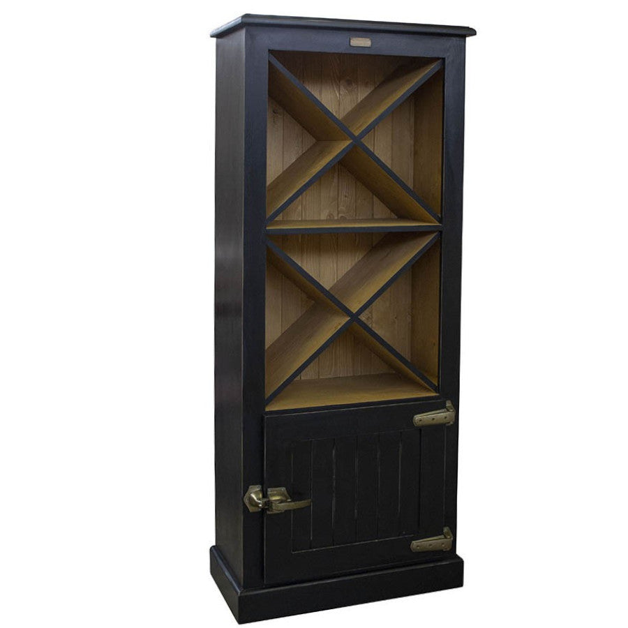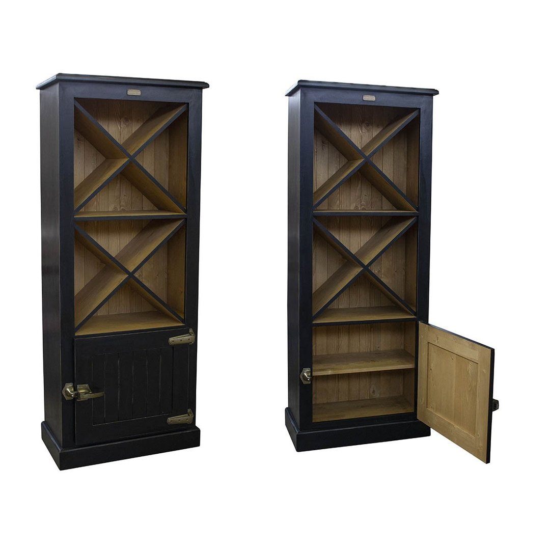 Mobile Credenza Alta Cantinetta con Anta, Mensole Portabottiglie e Maniglia Frigo - Design industrial