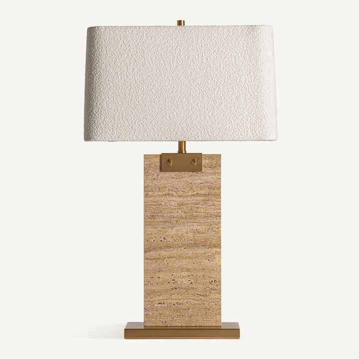 Lampada da Tavolo Stile Art Deco in Ferro e Travertino - Colore Beige bouclè