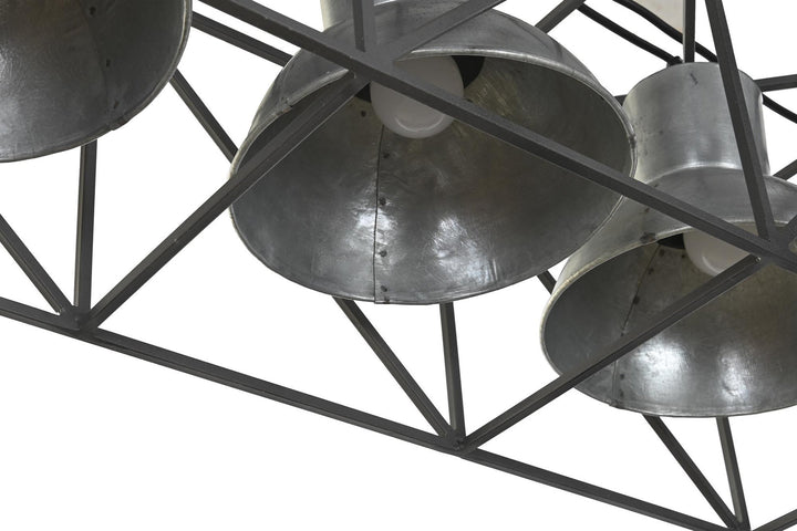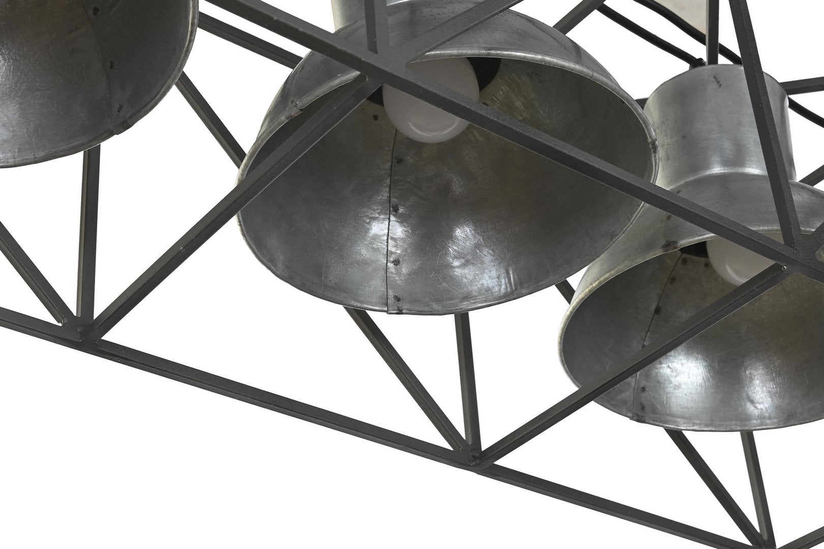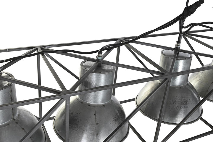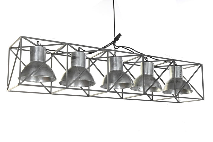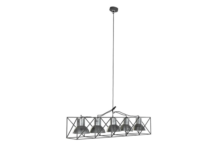 Il Lampadario rettangolare industrial rappresenta la perfetta fusione tra funzionalità e design retrò. Caratterizzato da linee pulite e materiali grezzi come il metallo nero e grigio, questo lampadario è l'epitome dello stile industriale, ideale per ambienti che ambiscono a un look moderno con un tocco di robustezza urbana. Le 5 lampade progettate in metallo offrono una distribuzione della luce che è sia ampia che focalizzata, perfetta per aree di lavoro o per il centro di una stanza. Le sue dimensioni (cm 115 x 24, altezza 24 cm) e la presenza di una lunga catena (lunghezza del cavo 140.00 cm) permettono un posizionamento versatile in ogni spazio, dai loft agli uffici o abitazioni con ampi soffitti. Con 5 attacchi per lampadine tipo E27 (non incluse), una potenza massima di 50.00 W e una tensione di 220.00 Volts, questo lampadario non solo illumina ma diventa un punto focale di stile e carattere. Le sue linee geometriche e la struttura aperta si adattano perfettamente alla tendenza dei Lampadari industrial on line, rendendolo una scelta popolare per chi è alla ricerca di un pezzo di design accessibile e di forte impatto visivo.