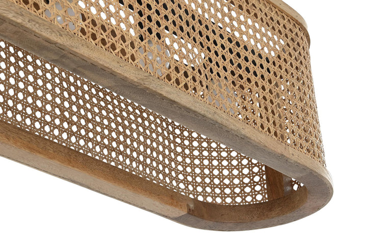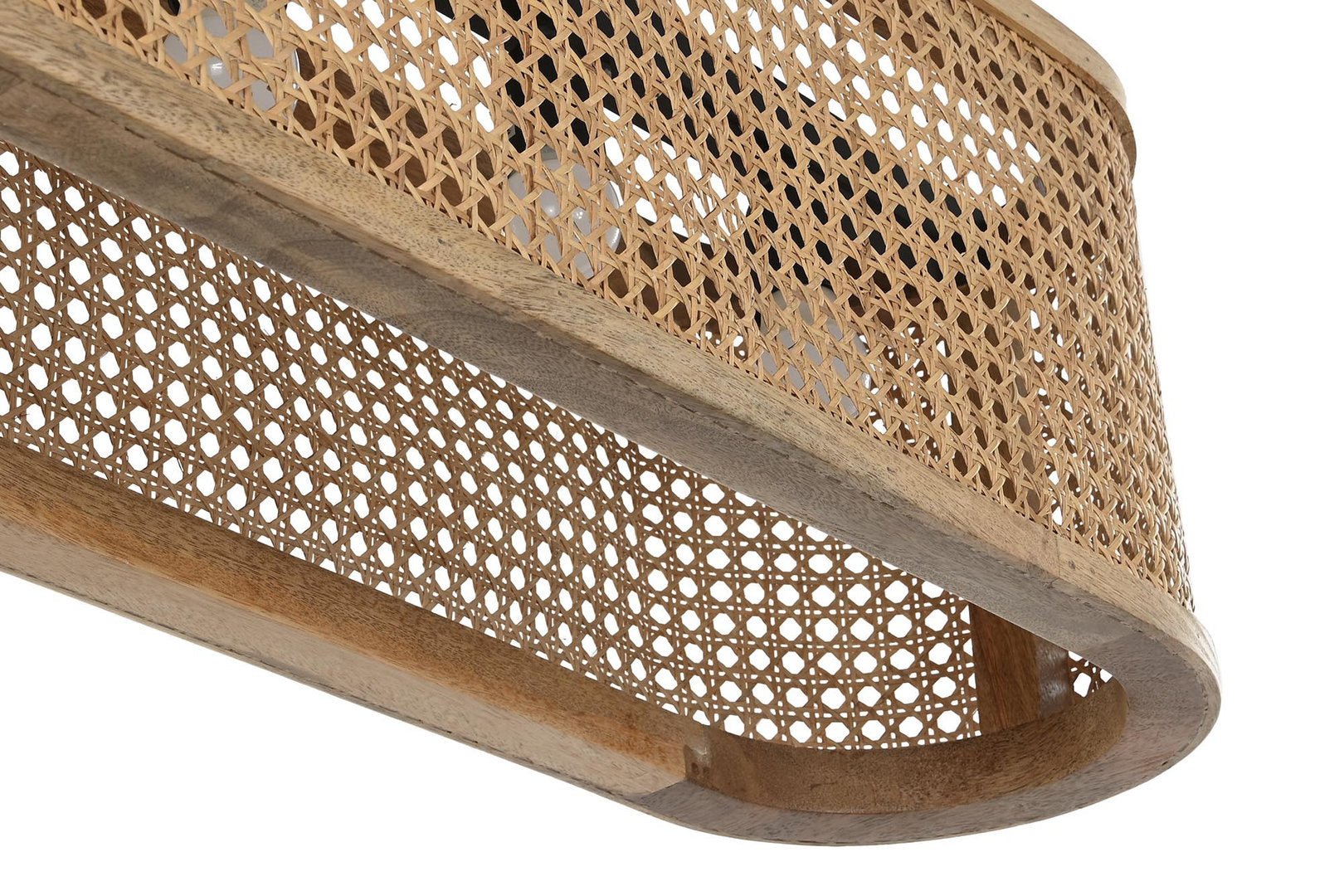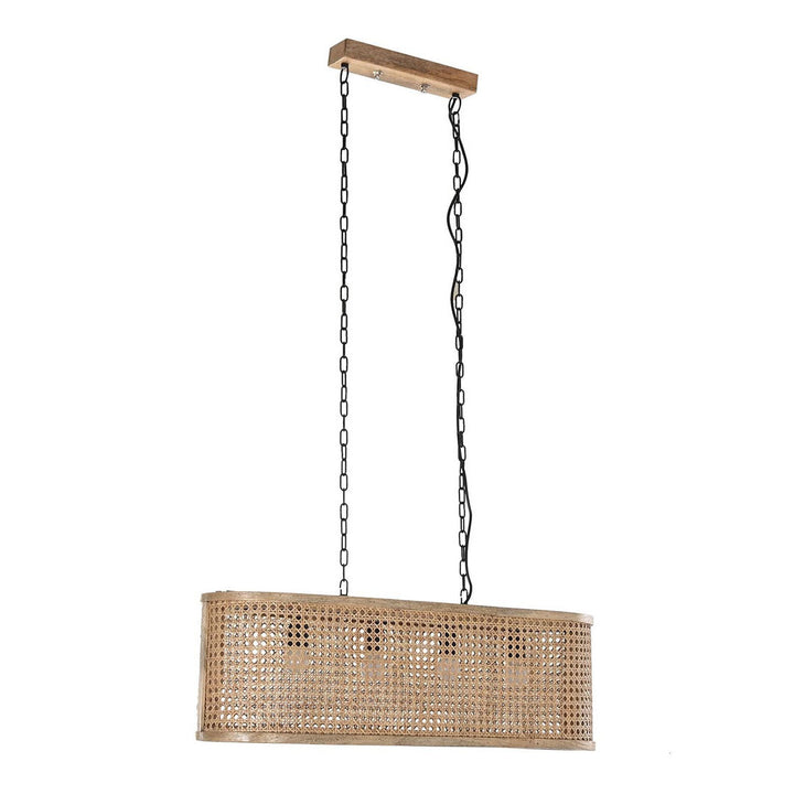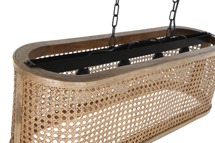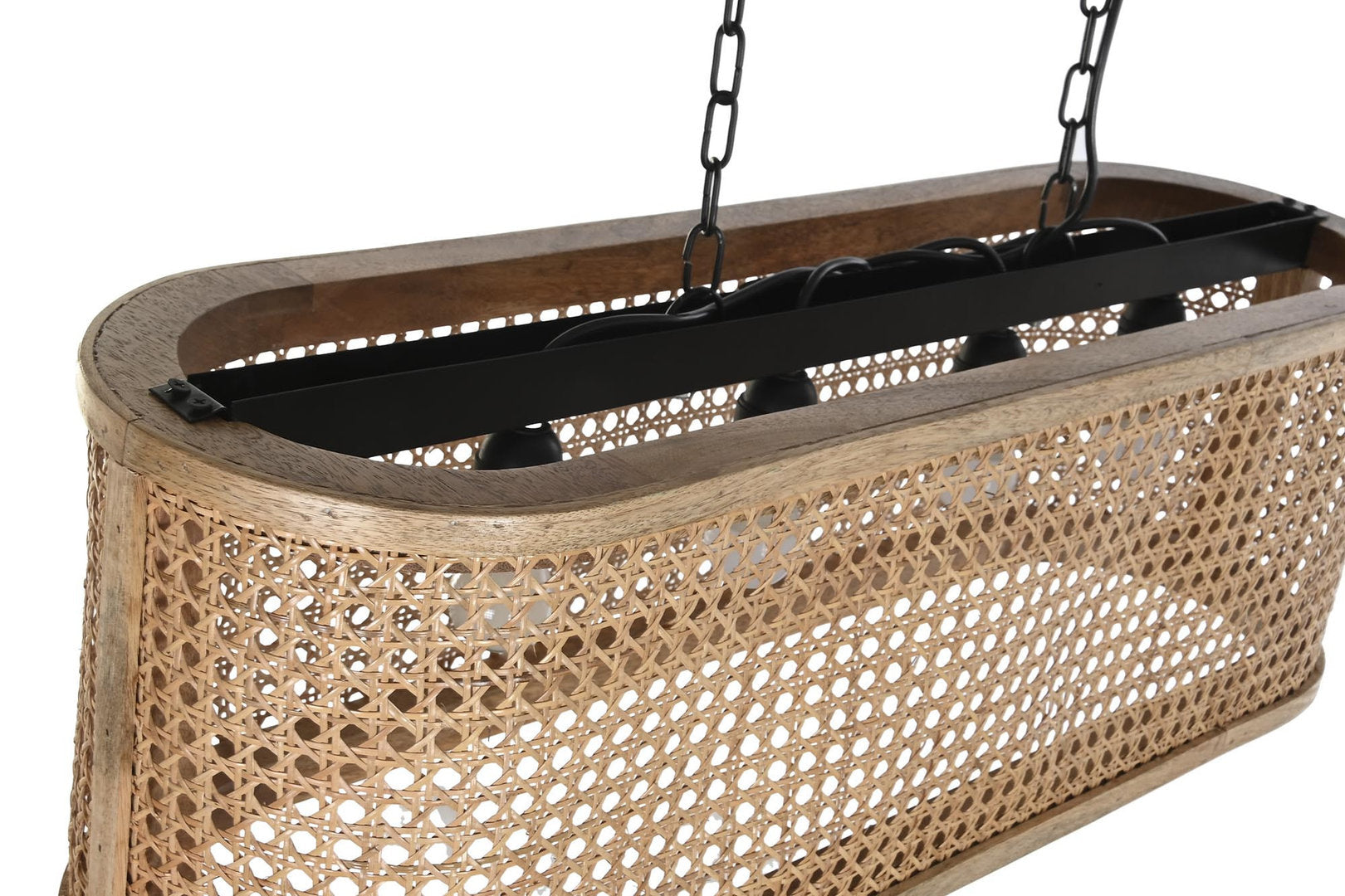 Il Lampadario bohémien country chic, realizzato in pregiato legno di mango e paglia di Vienna, rappresenta l'essenza dell'arredamento che mira a creare atmosfere calde e accoglienti. Questa illuminazione si adatta perfettamente ad interni ispirati alla natura, offrendo un tocco di raffinatezza semplice. Presentando una forma rettangolare allungata (dimensioni: cm 80 x 24, altezza 28 cm, peso 3,20 Kg), è ideale per sovrastare un tavolo da pranzo o un'isola di cucina, garantendo una luce soffusa e filtrata attraverso la sua trama aperta. La sua colorazione neutra e la versatilità nel design lo rendono facile da inserire in svariati contesti abitativi. Le catene che lo sostengono introducono un dettaglio industriale contrastante, che arricchisce il lampadario con una nota di robustezza. Dotato di 4 attacchi per lampadine tipo E27 (bombilla non inclusa), supporta lampadine fino a 50.00 Watts, con una tensione di 220.00 Volts e una lunghezza del cavo di 110.00 cm, questo lampadario è pensato per chi cerca un pezzo di illuminazione non solo funzionale ma capace di aggiungere un tocco distintivo al proprio spazio.