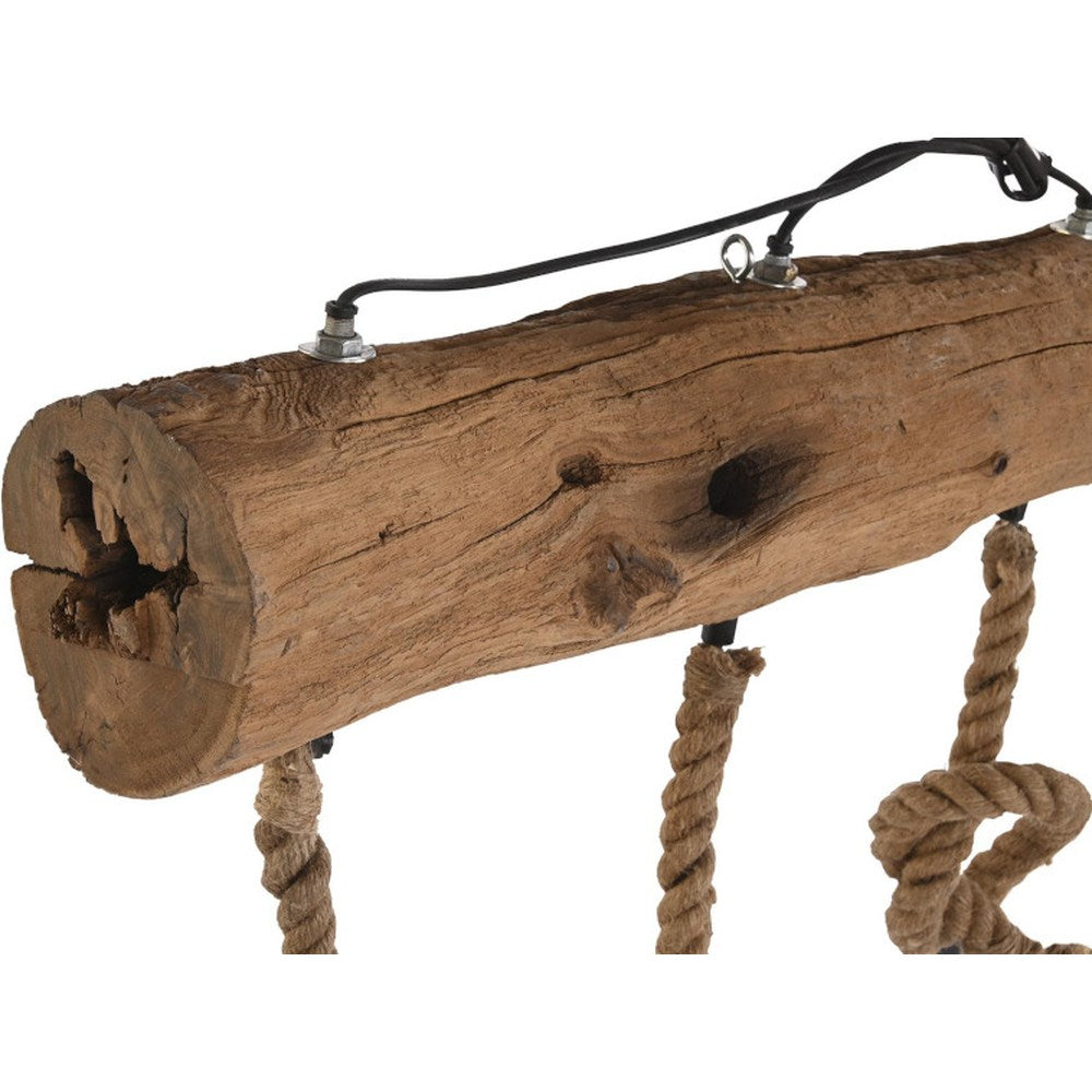 Lampadario Nautico in Acacia e Corda a 6 Luci