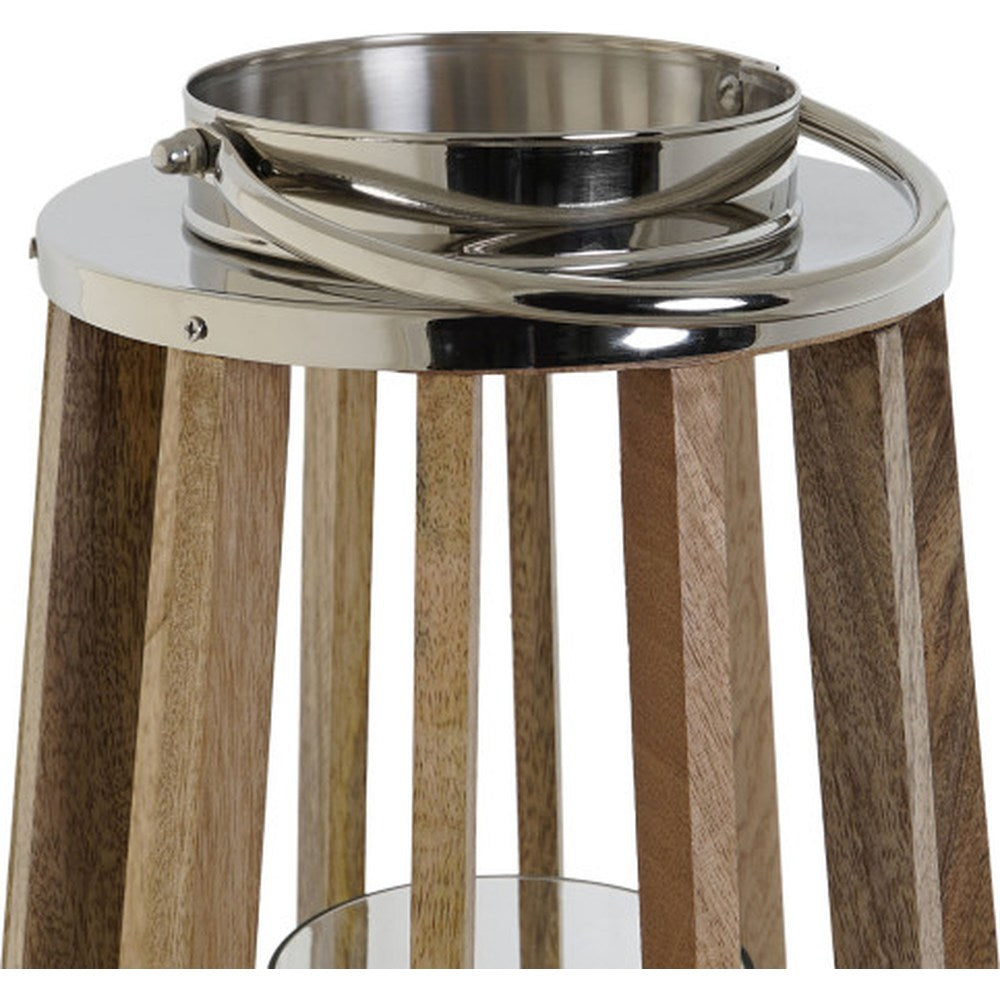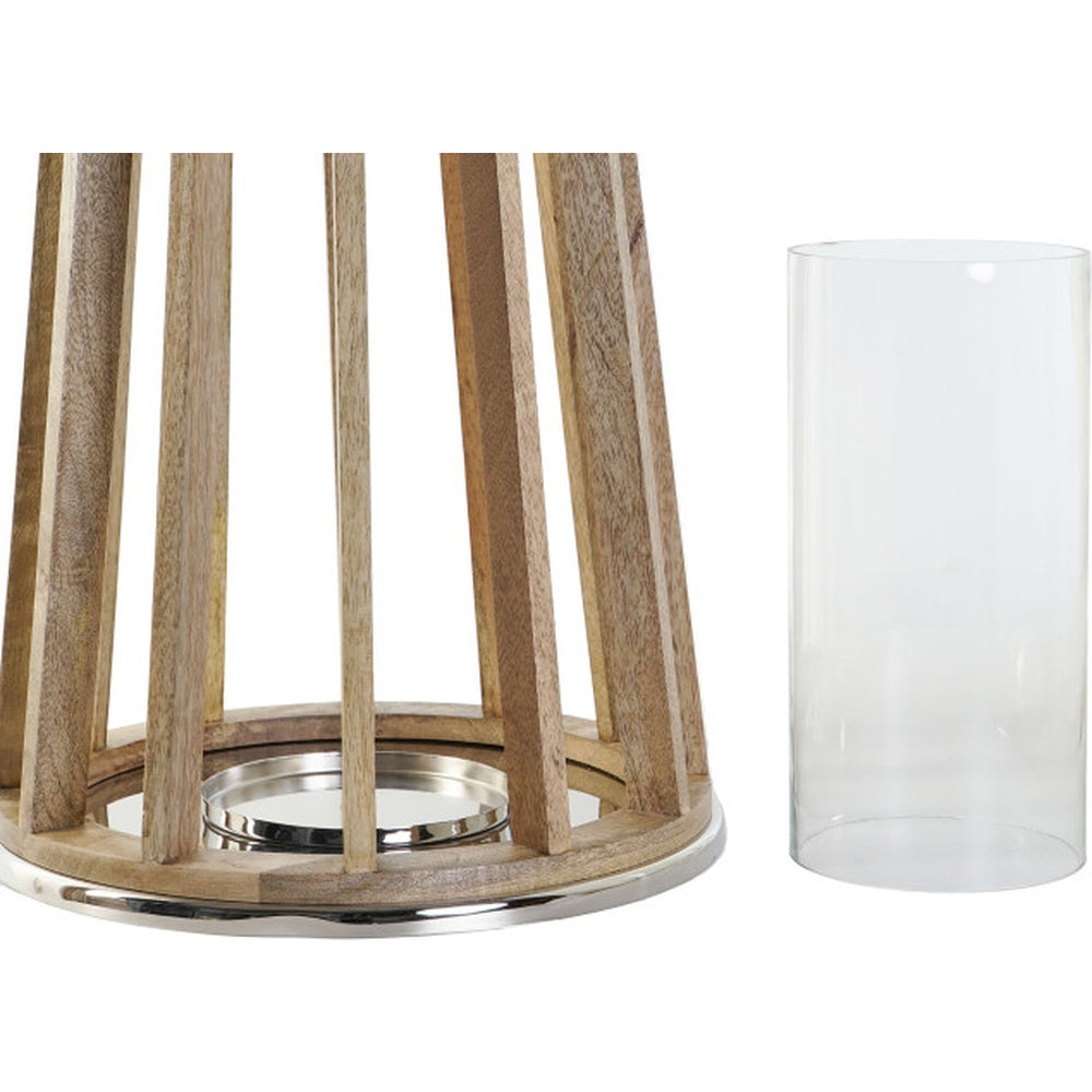 NOTE: Mango massello naturale, cristallo trasparente, dettagli in metallo platinato. Ideale per candele o LED. Prodotto artigianale: leggere variazioni rendono ogni pezzo unico.