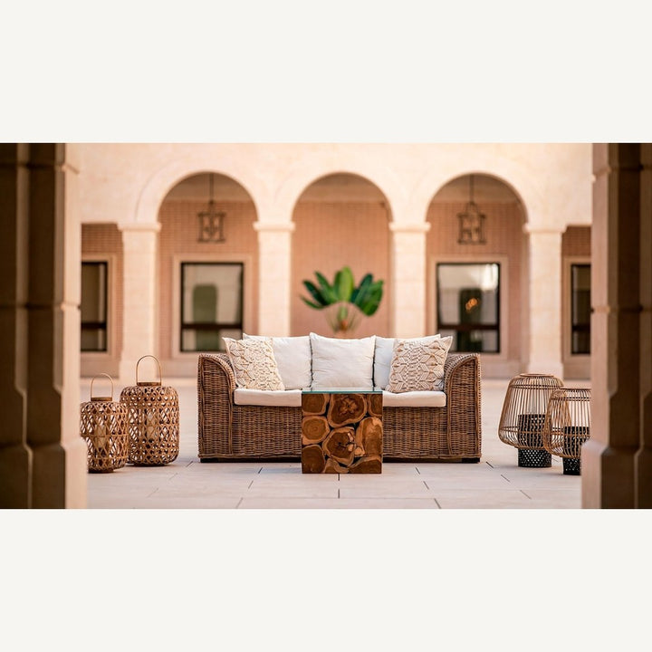 struttura in bambù, rattan e vetro