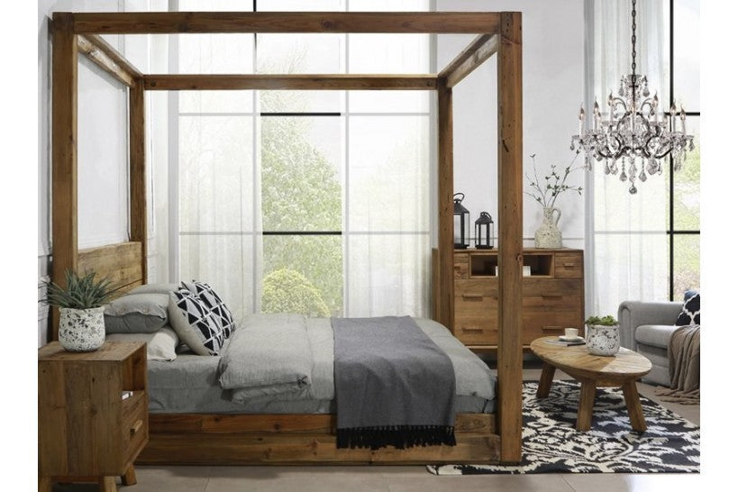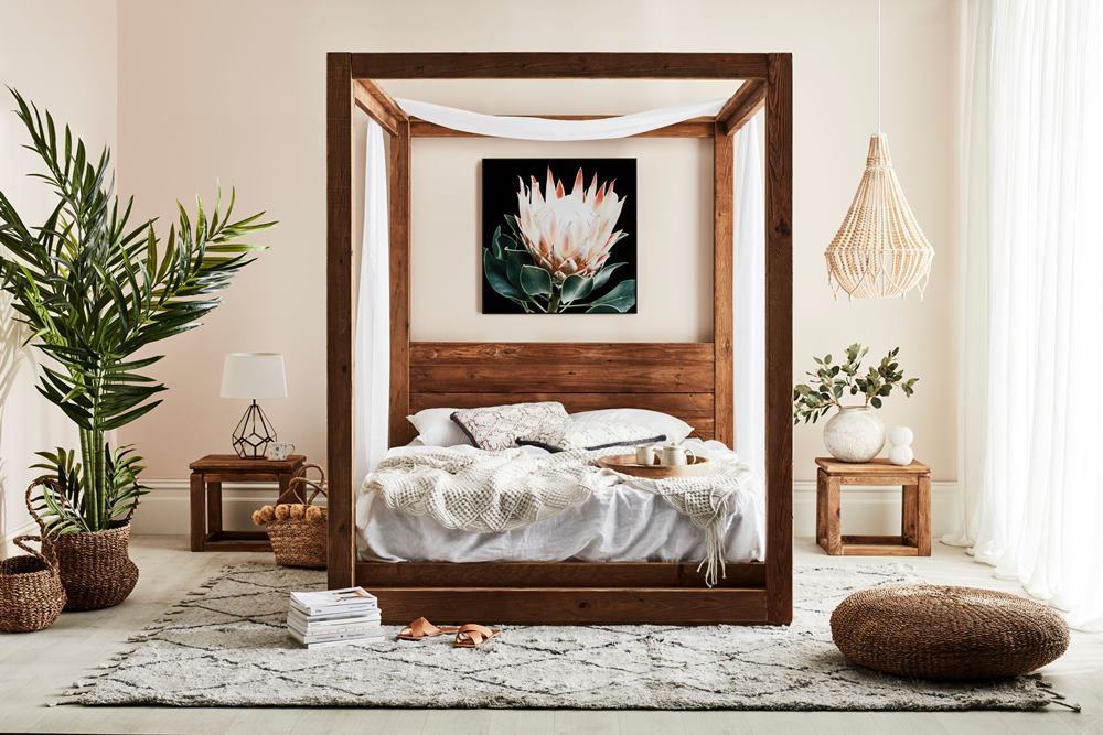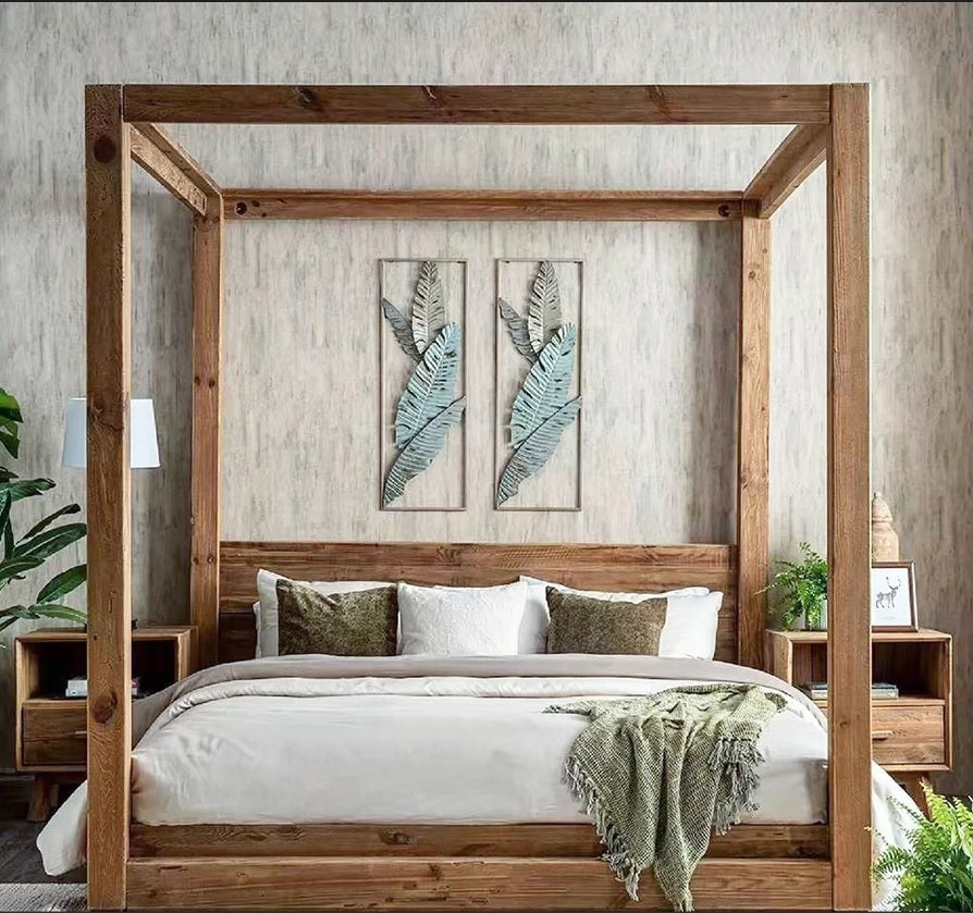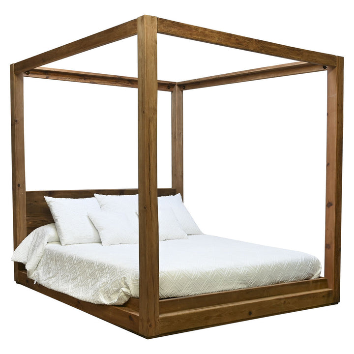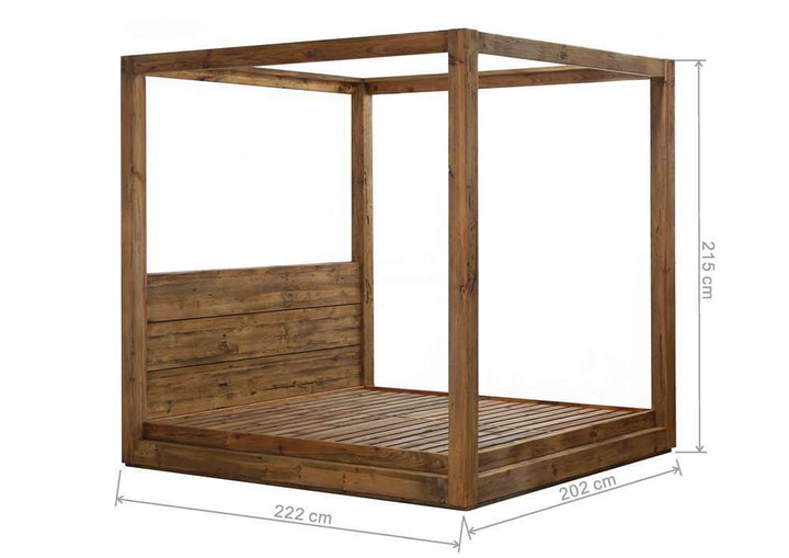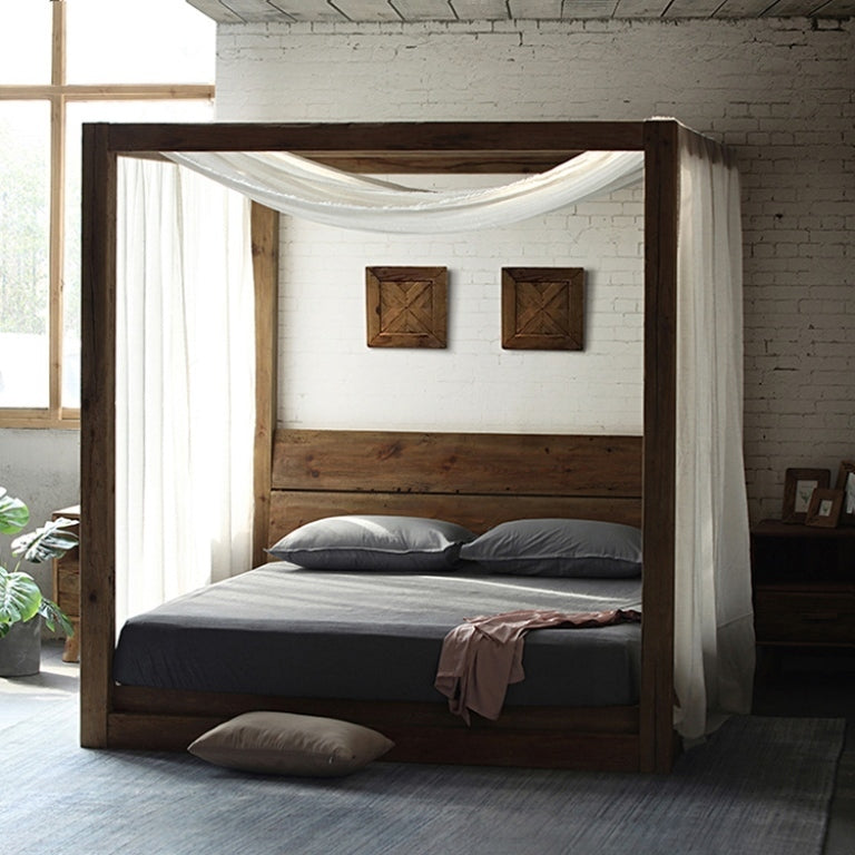 Letto a Baldacchino Orientale in Legno di Pino Riciclato - Unione di Stile Etnico e Sostenibilità
