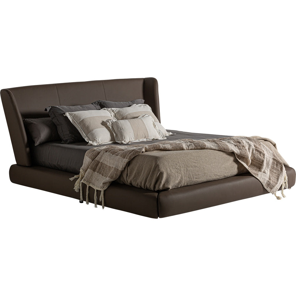 Il letto Wayne di Vical è un letto matrimoniale déco chic pensato per camere da letto eleganti e ambienti dal carattere sofisticato. Il rivestimento in pelle marrone dona profondità e calore alla zona notte, mentre la struttura in legno di pino con imbottitura in schiuma assicura stabilità e comfort. Le proporzioni equilibrate e la testiera ampia creano un’estetica raffinata con richiami allo stile déco reinterpretato in chiave contemporanea.