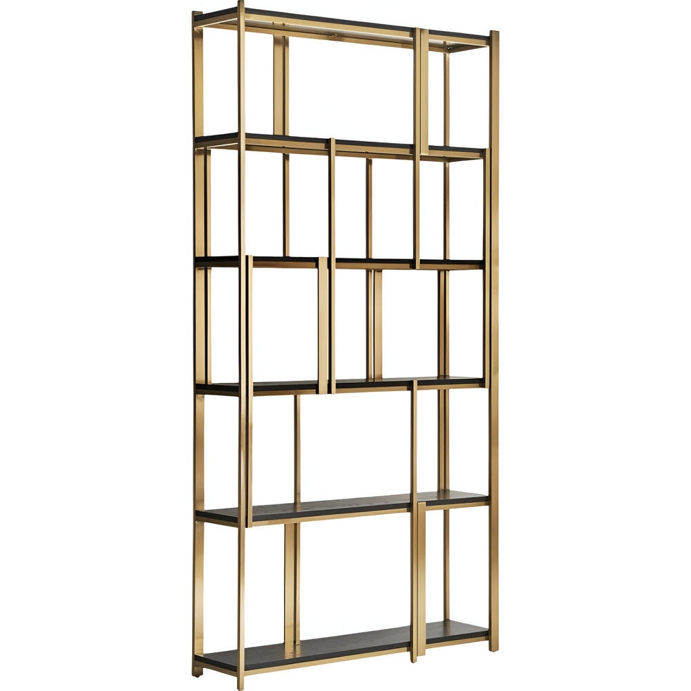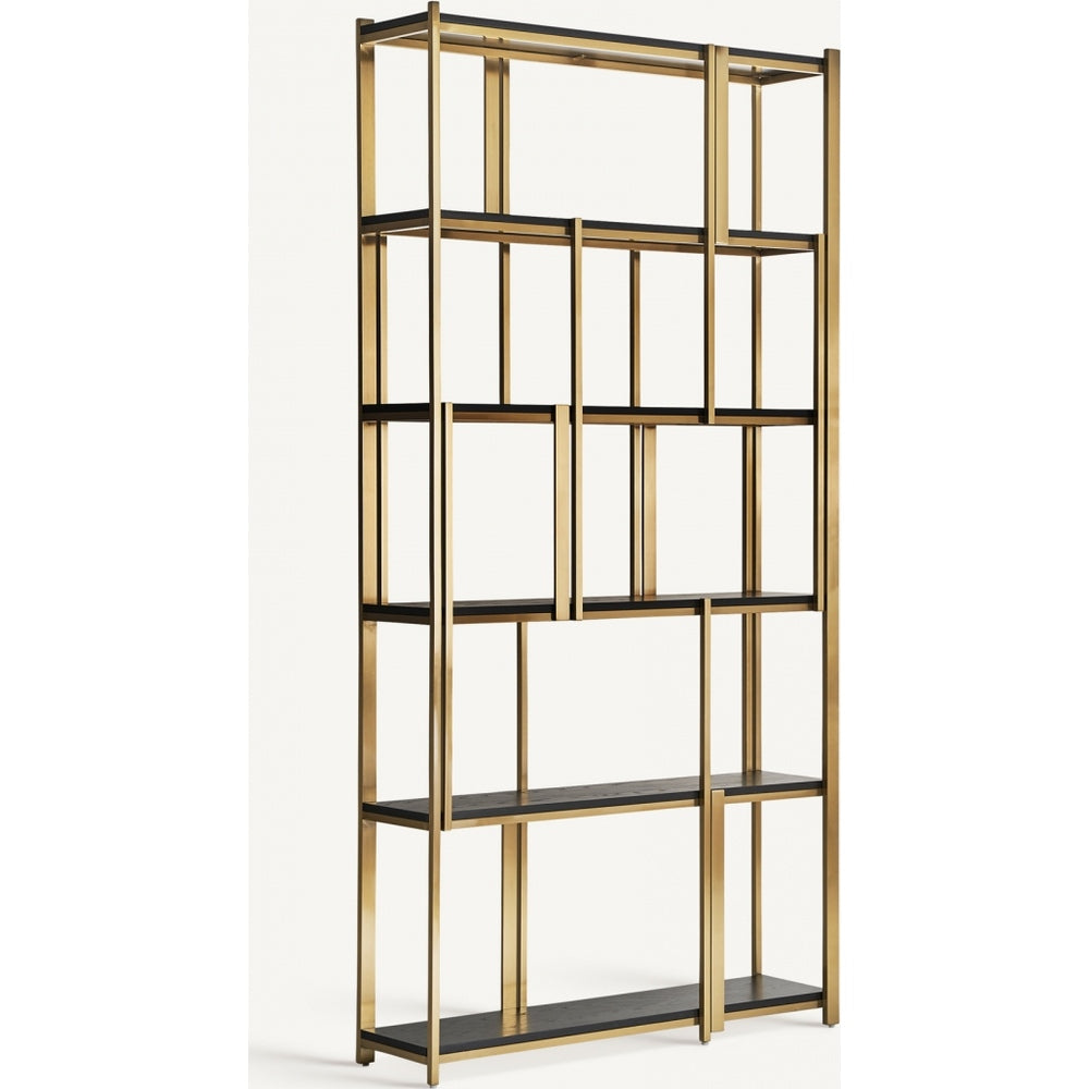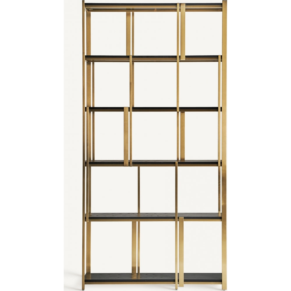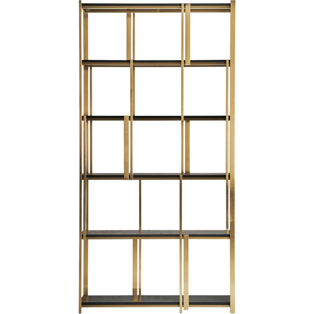 Libreria Art Decò Chic in Acciaio Dorato e Legno di Quercia Nera