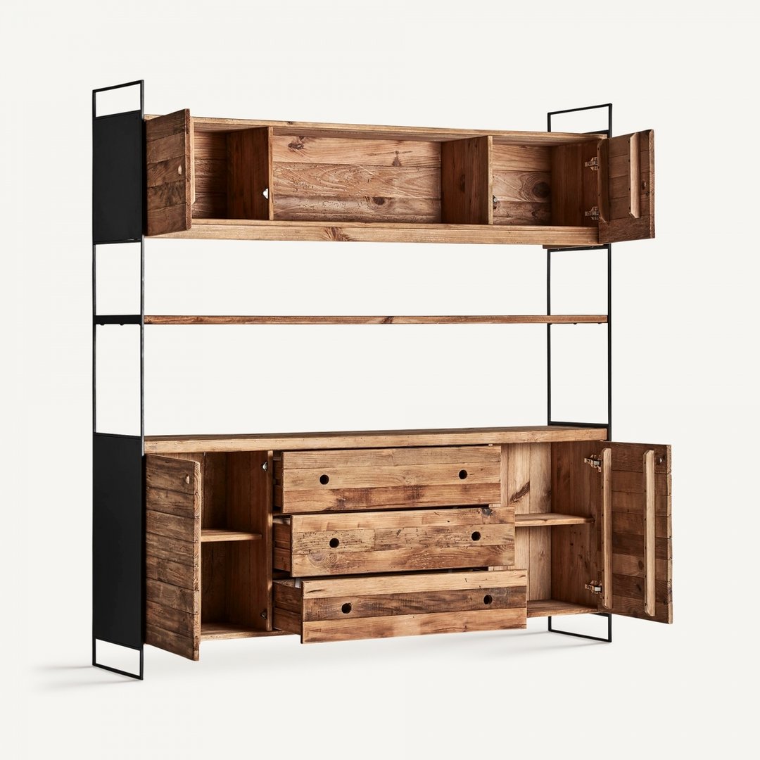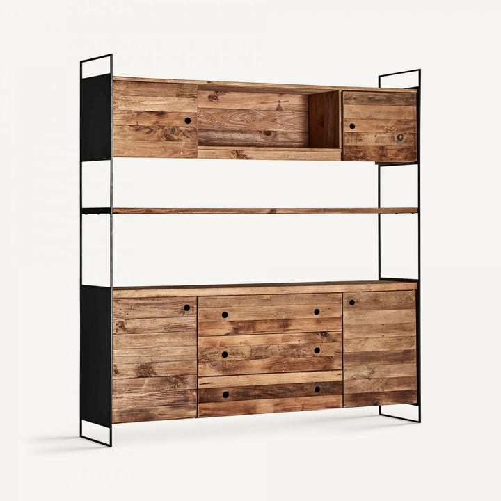Realizzata con materiali di alta qualità, questa libreria in legno di pino riciclato combinato con ferro è l'ideale per chi cerca un arredo funzionale e di stile.