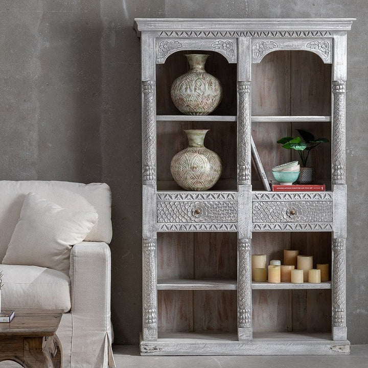 Incredibilmente bella la libreria etnica orientale è un pezzo d'arredo di grande pregio e bellezza, realizzato con legno massello di mango grigio di alta qualità. Questo tipo di legno è noto per la sua durezza, resistenza e bellezza naturale, rendendo questa libreria non solo elegante, ma anche molto resistente e duratura. Con le sue dimensioni di cm 120 x 40 H 182, questa libreria offre uno spazio ampio e versatile per riporre i tuoi libri, oggetti decorativi, foto e altro ancora. La presenza di ripiani inferiori con altezza di 28/29 cm e ripiani superiori con altezza di 39/40 cm, offre una grande flessibilità nell'organizzazione degli oggetti, mentre il cassetto di cm 44x11 è perfetto per riporre oggetti di piccole dimensioni. Grazie al suo stile etnico orientale, questa libreria aggiungerà un tocco di originalità e personalità alla tua casa. Acquistabile comodamente online tra la nostra selezione di mobili etnici, questa libreria è un pezzo unico e originale che renderà la tua casa ancora più affascinante ed elegante.