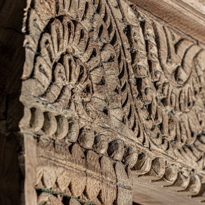 Realizzata con cura a mano, questa credenza unisce l'eleganza dello stile etnico con la robustezza del legno di mango combinato con il legno di teak. Ogni pezzo è unico, caratterizzato da variazioni di tonalità, dimensioni e forme, nonché da affascinanti imperfezioni come crepe, nodi e segni che aggiungono valore e rendono questa credenza un'opera d'arte senza pari. La finitura invecchiata conferisce un tocco di autenticità a questa magnifica credenza, mentre le misure interne del vano (79 x 35 x 163 cm) ti offrono spazio extra per i tuoi oggetti più grandi. Le robuste zampe a zoccolo da 15 cm assicurano stabilità e solidità, con una capacità di carico fino a 80 kg. Ogni ripiano è in grado di sostenere fino a 15 kg. Unisce funzionalità e bellezza, questa credenza sarà l'elemento centrale del tuo spazio, aggiungendo un tocco unico e raffinato al tuo arredamento.