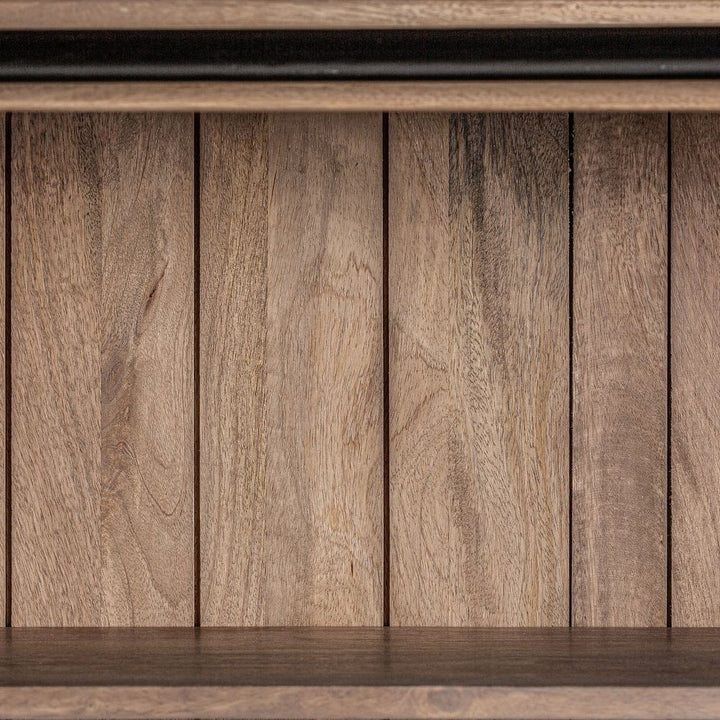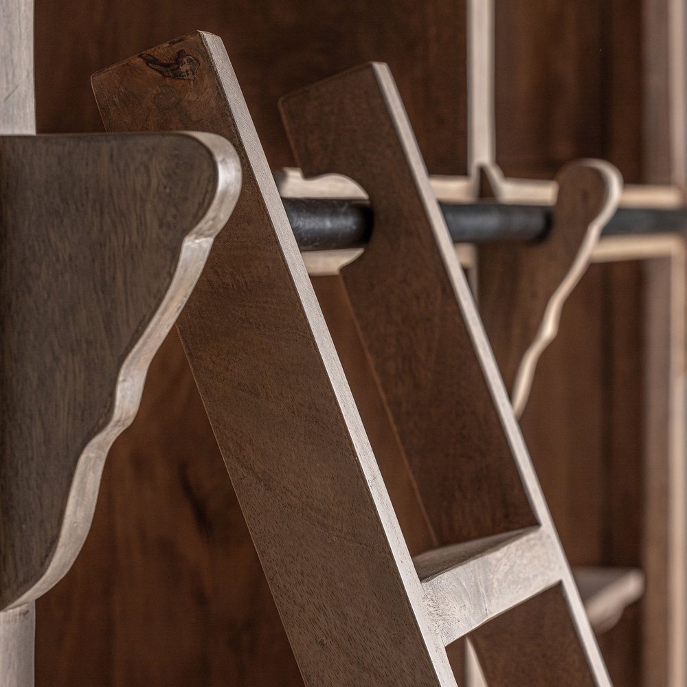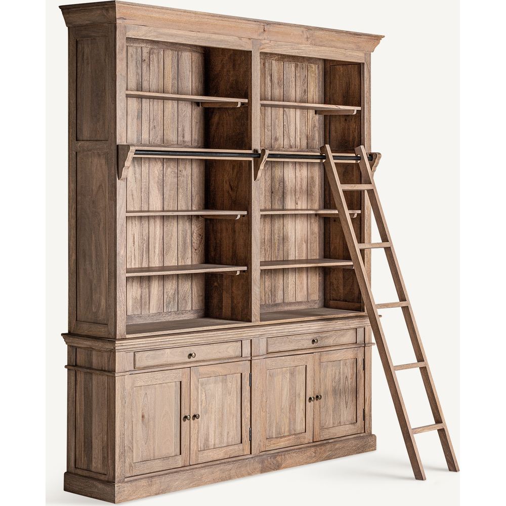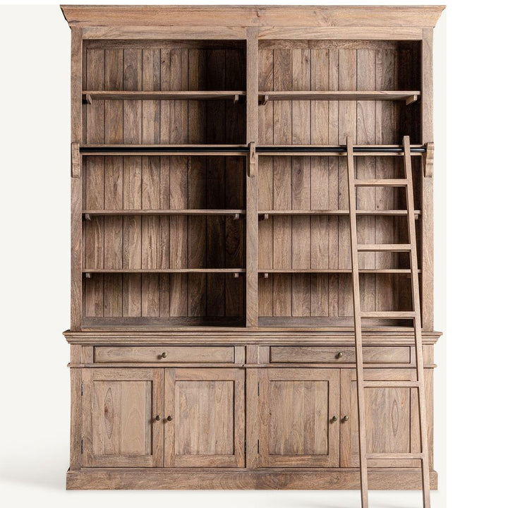 NOTE: Legno massello di mango, dettagli in ferro, struttura smontabile, 2 cassetti, 4 ante, ripiani mobili, scala inclusa, portata fino a 300 kg.