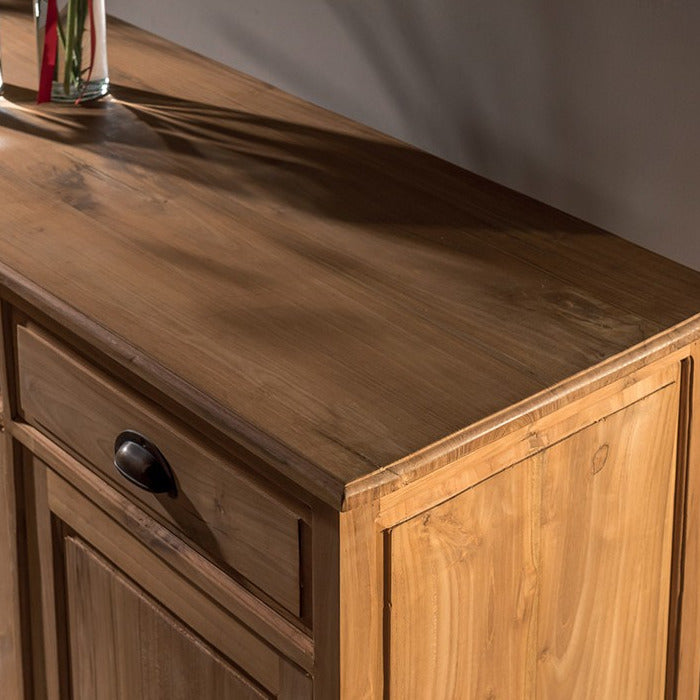 Lo stile classico-rustico è calore eterno e luce naturale. L’Eleganza Madia in Teak è realizzata in teak massello, con cera che esalta venature dorate. Con peso di 58 kg, presenta 2 ante battenti, 3 cassetti e ripiano interno. Versione bianco decapé (+20%) regala freschezza extra. Perfetta per cucine shabby e soggiorni classici, aggiunge ordine e poesia. Proposto con sconti fino al 70% su Ethnic Chic.