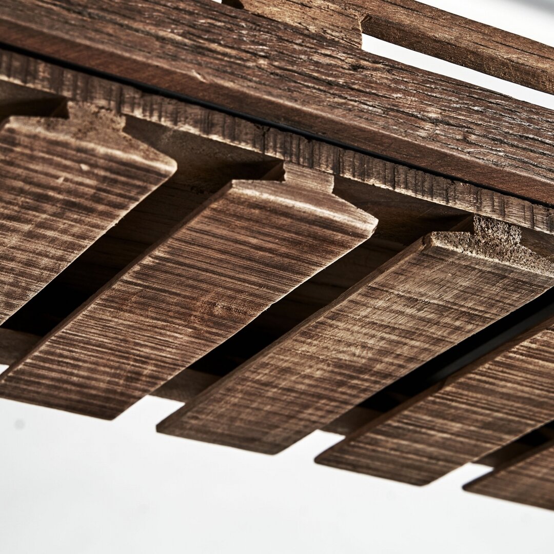 Realizzato in legno di pino riciclato con finitura nera invecchiata, il mobile presenta dettagli in ferro nero e un raffinato piano d’appoggio in marmo bianco. La struttura solida è pensata per garantire resistenza e praticità, con ampi spazi contenitivi, due cassetti, ripiani inferiori con listelli in legno per il posizionamento sicuro di bottiglie e bicchieri, oltre a una griglia sospesa porta-calici. Il mobile è staccabile per un trasporto e montaggio più agevoli. Ogni pezzo è fatto a mano, con finiture uniche che possono presentare leggere variazioni di colore e dettagli artigianali distintivi. Perfetto per creare un angolo bar funzionale e di grande impatto visivo.