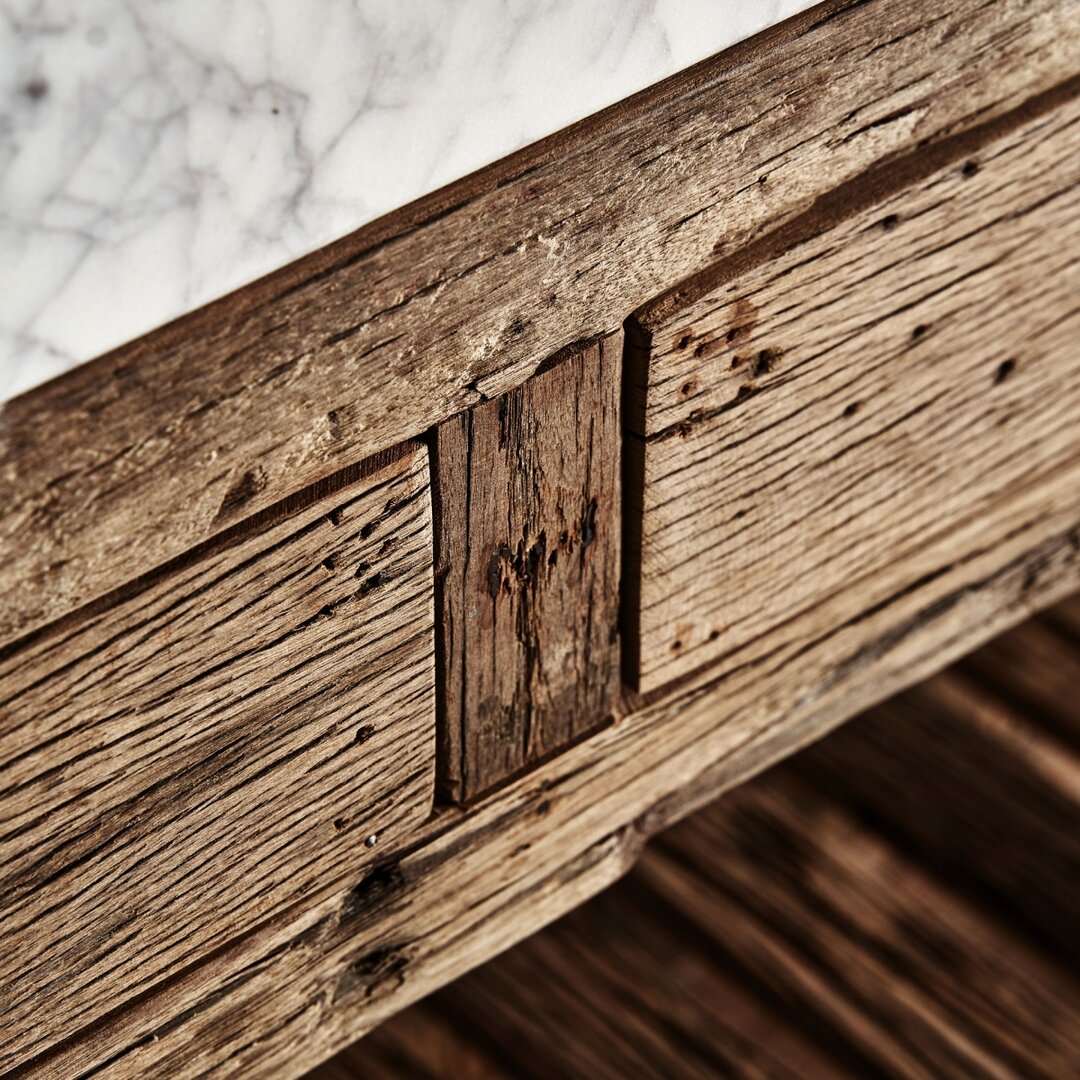 legno di pino riciclato nero e marmo