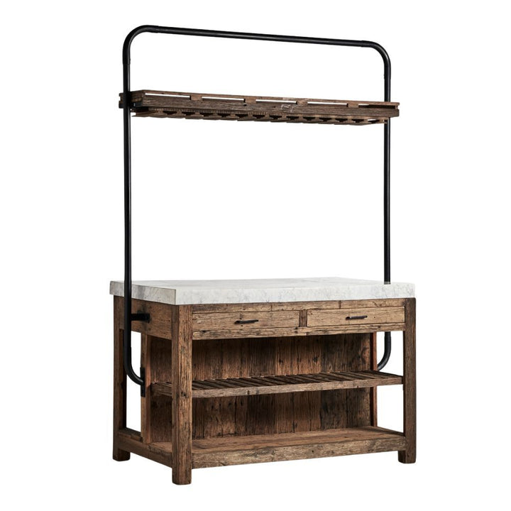Mobile Bar Industriale con Bancone in Legno e Marmo