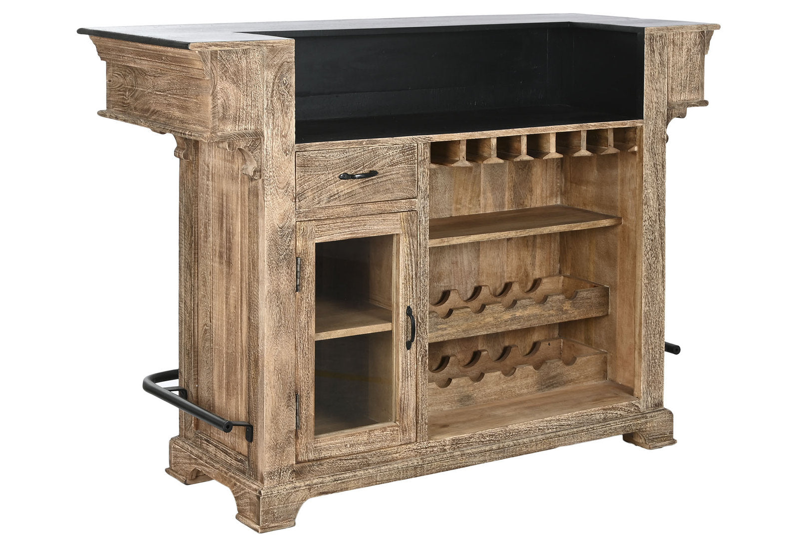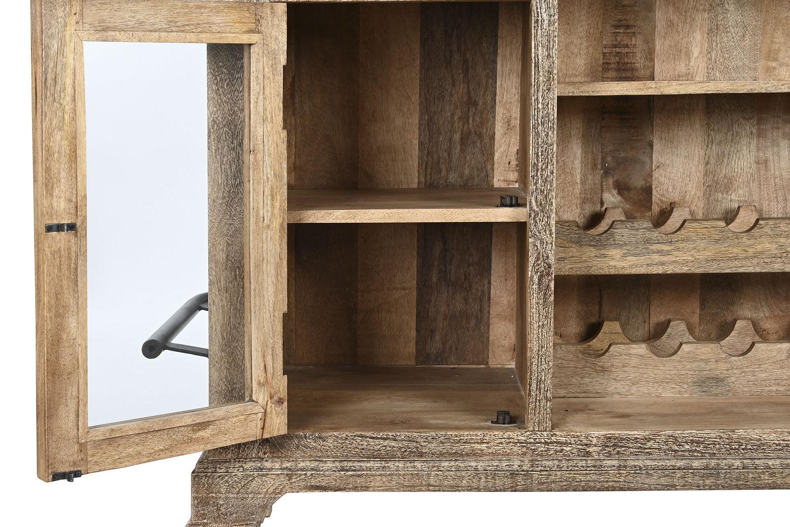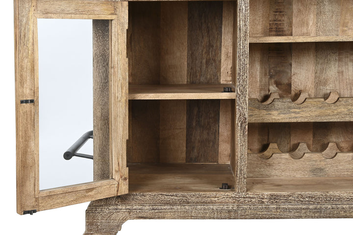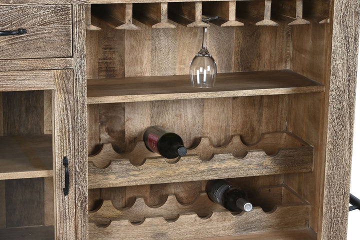 Immergiti nell'atmosfera di un accogliente bistrot con questo mobile bar dallo stile industrial rustico. Realizzato con legno massello di mango e accenti metallici, questo mobile rappresenta una combinazione affascinante di funzionalità e design sofisticato.