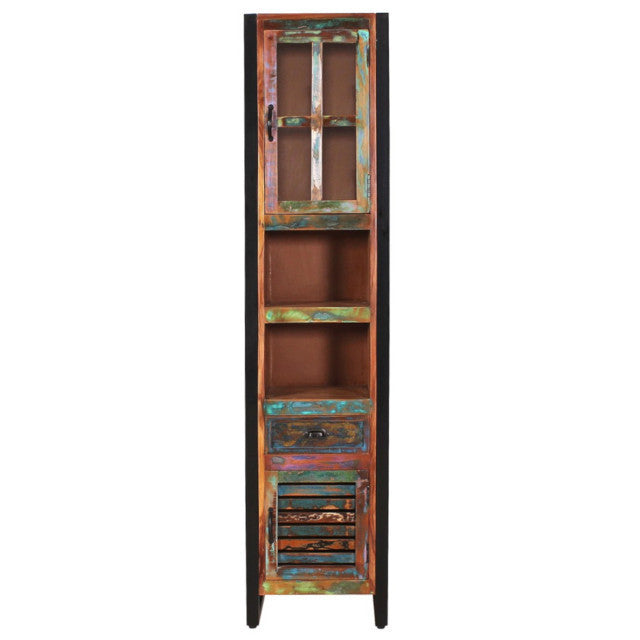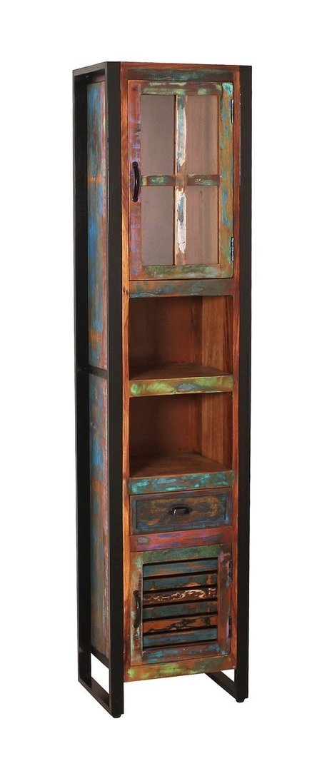 Mobili realizzati con legno riciclato trattato e recuperato per creare ambienti con uno stile industrial allegro e colorato.