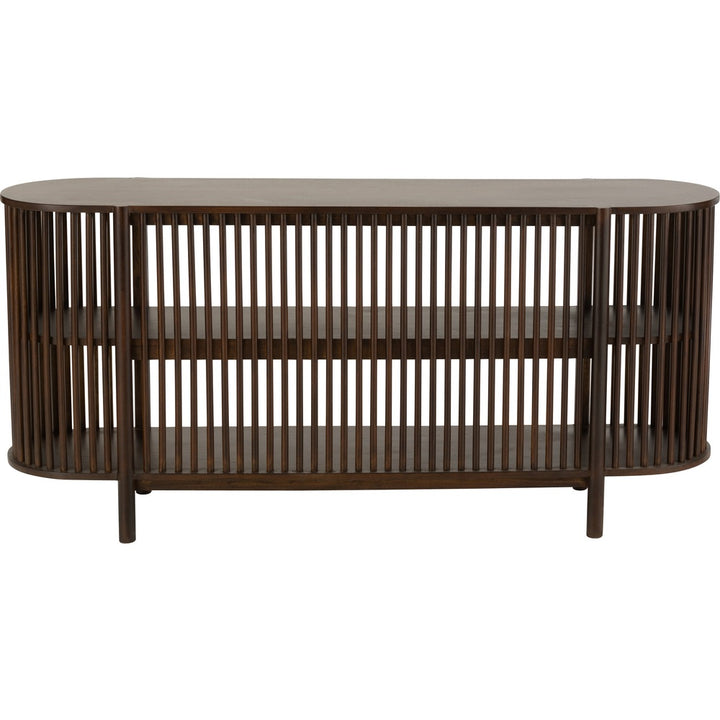 Consolle Esotica Vintage in Legno Massello di Mango a Doghe Ovali
