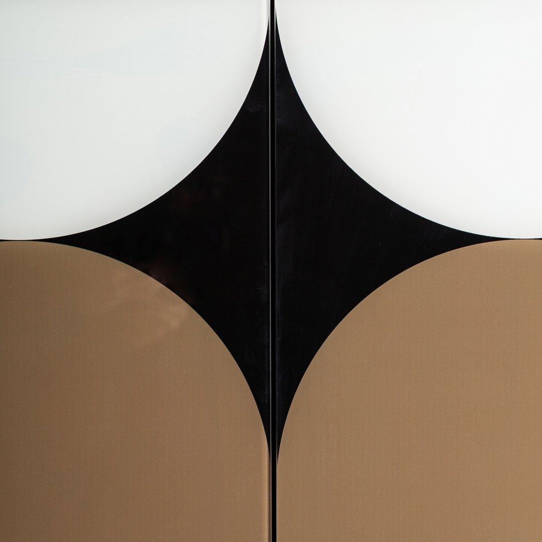 Lo stile Art Déco incontra l'influenza del Bauhaus in questo mobile, combinando legno nero, ferro dorato e vetro in un design elegante e funzionale. Le porte in vetro bianco e le gambe in ferro con finiture dorate aggiungono un tocco sofisticato, perfetto per ambienti contemporanei. Con un interno spazioso e un ripiano regolabile, offre versatilità nell’organizzazione degli oggetti. Le gambe assicurano stabilità e contribuiscono al fascino unico del mobile. Ideale per chi cerca una soluzione che unisca estetica raffinata e praticità, questo pezzo arricchisce il soggiorno con uno stile distintivo e moderno.