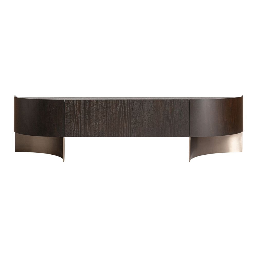 Mobile Porta TV Art Déco in Rovere Marrone e Acciaio Inox Dorato