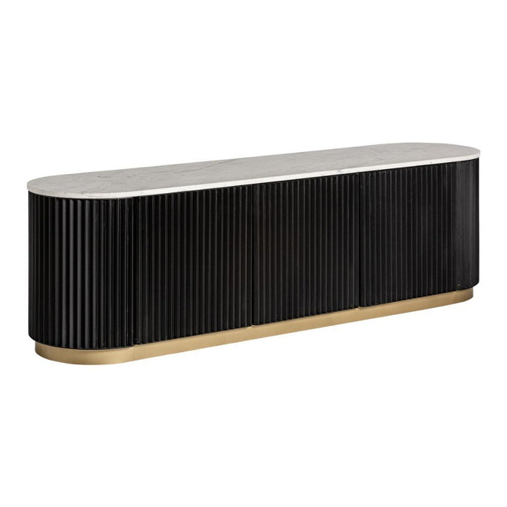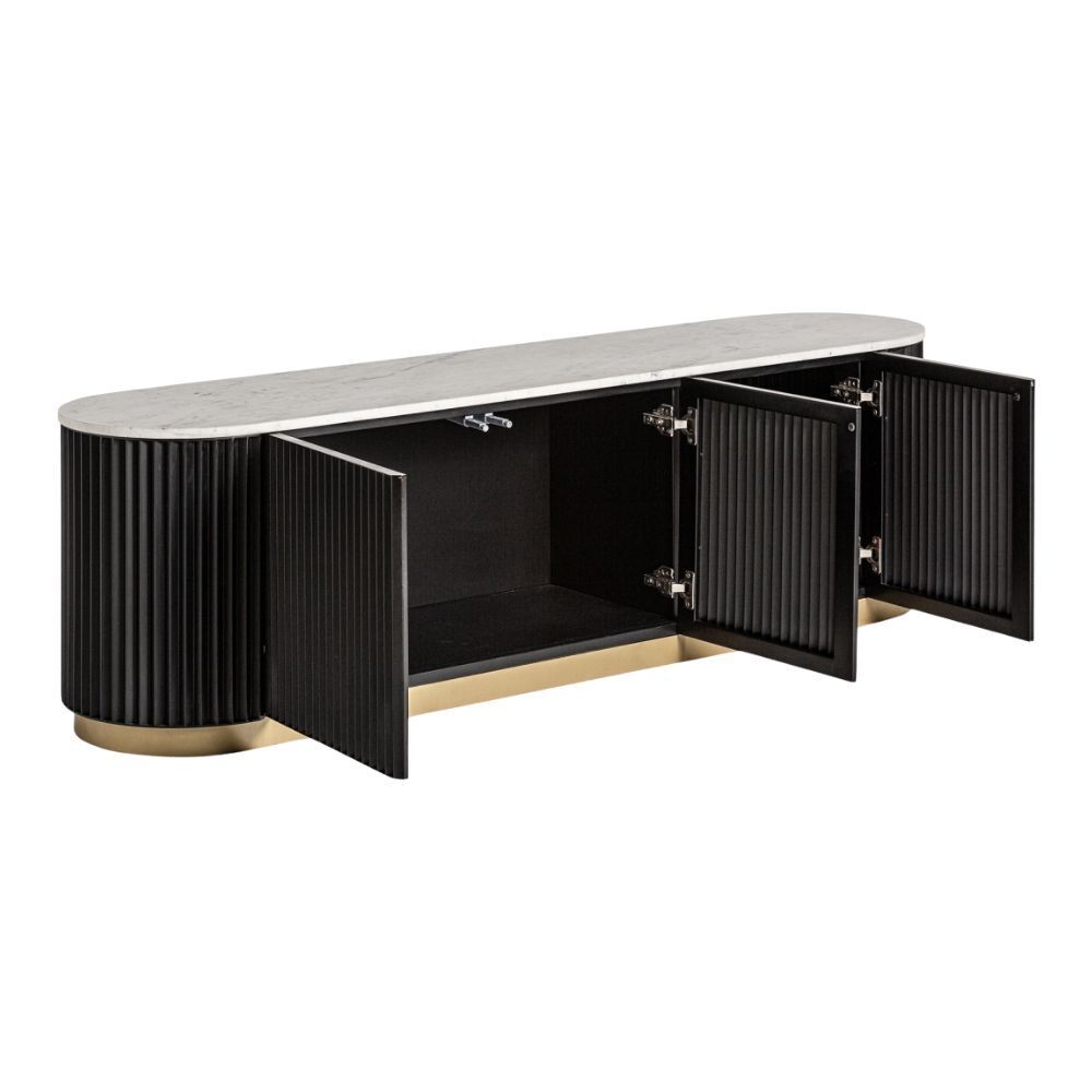 Mobile Porta TV Art Déco in Marmo Nero, Ferro Bianco e MDF Dorato