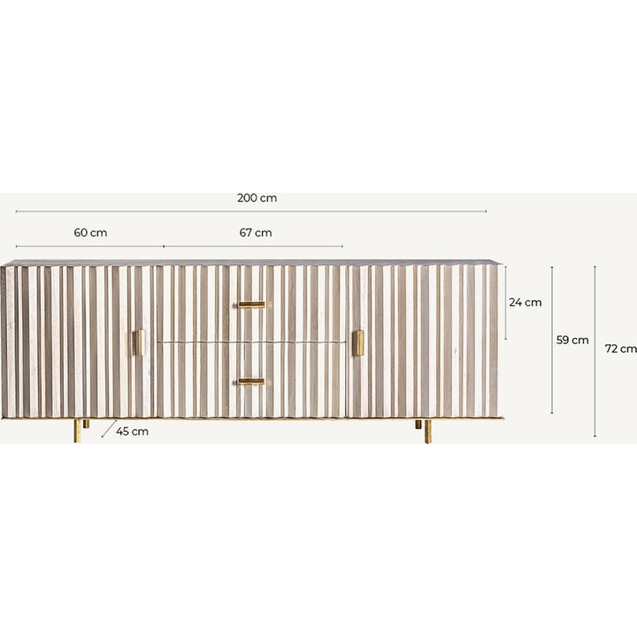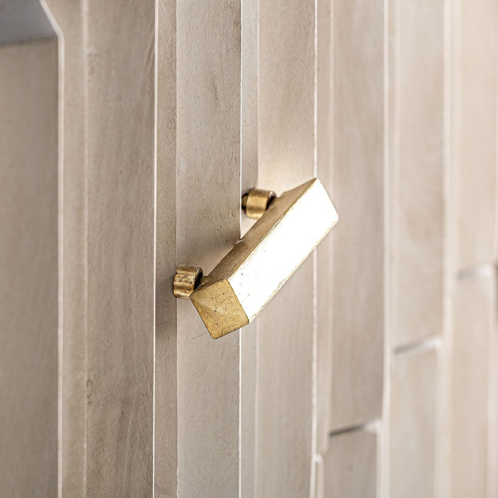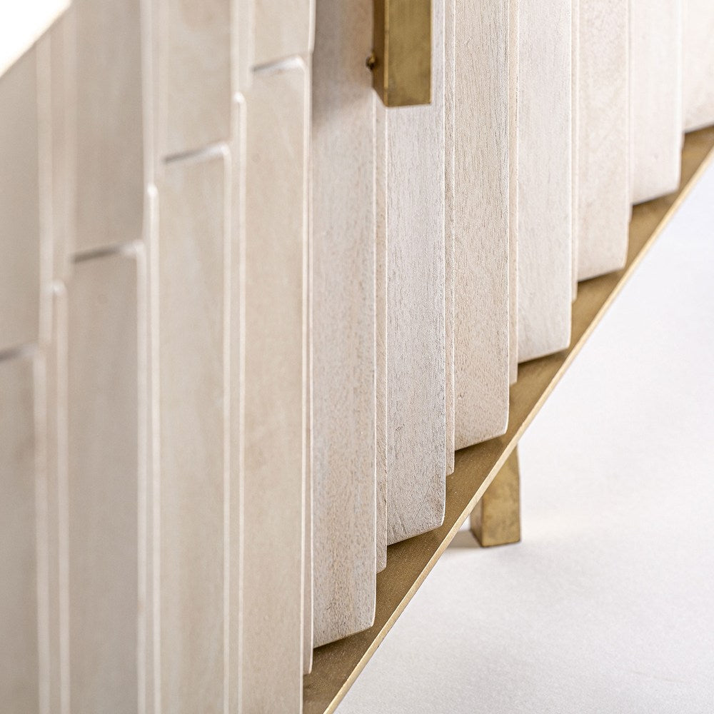Mobile Porta TV Art Déco in Legno di Mango Crema e Ferro Dorato