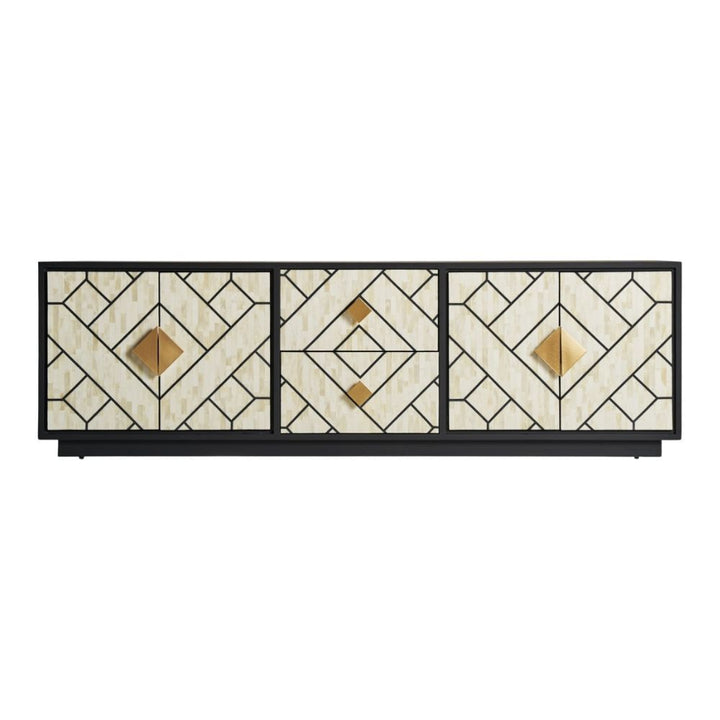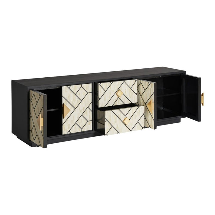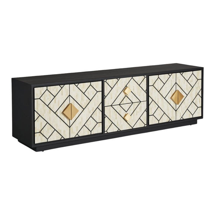 Mobile Porta TV Art Déco in MDF Nero e Osso Bianco