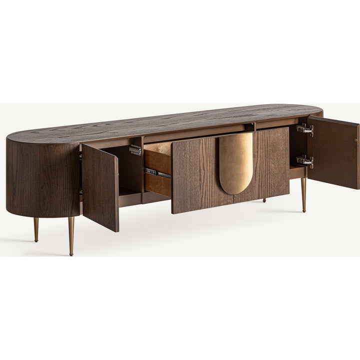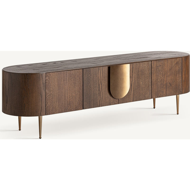 Mobile Porta TV Art Déco in Rovere Tinto e Acciaio Inox Dorato Opaco
