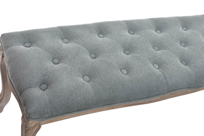 Lo stile francese elegante è apprezzato per la sua capacità di unire raffinatezza e comfort, creando ambienti accoglienti e ricercati. Questa panca capitonnè è l’espressione perfetta di questa estetica, aggiungendo un tocco di lusso discreto a ogni spazio. Realizzata in legno massello di abete decapato, offre una struttura robusta e un look naturale, ideale per interni sofisticati. Il rivestimento in 100% poliestere color grigio dona un'eleganza sobria e versatile, perfetta per chi cerca un complemento d'arredo che si integri facilmente in diversi stili. Con un peso di 5,2 kg e dimensioni di 112 x 38 x H 50 cm, questa panca è pratica e maneggevole, ideale come panca o pouff in vari ambienti della casa, dal salotto alla camera da letto.