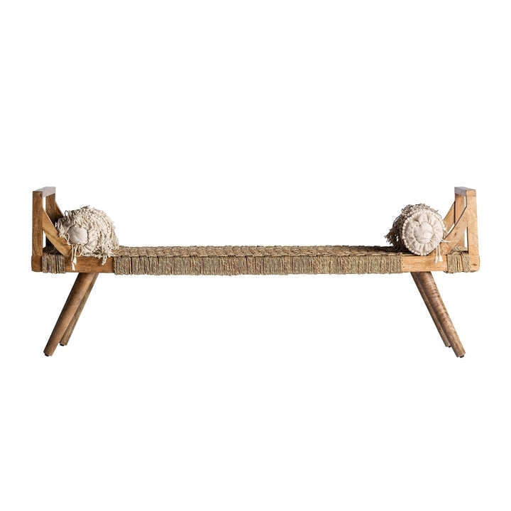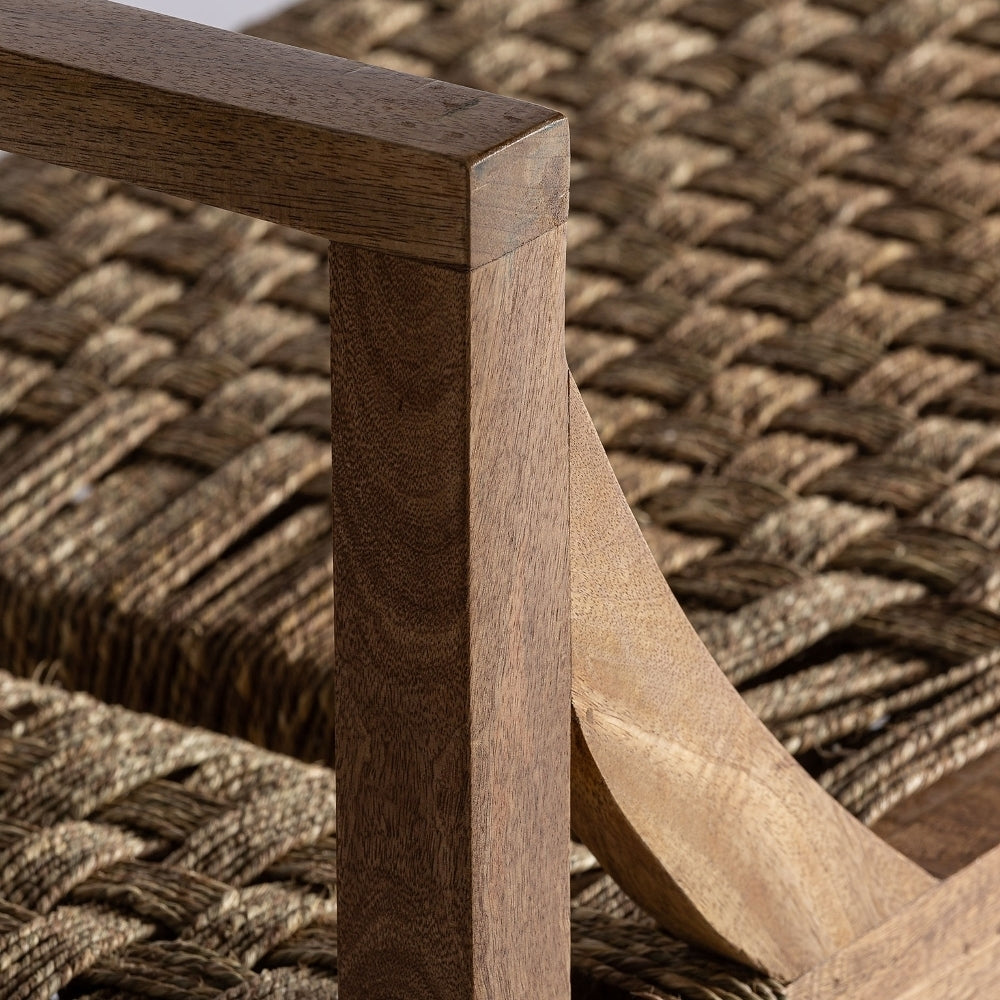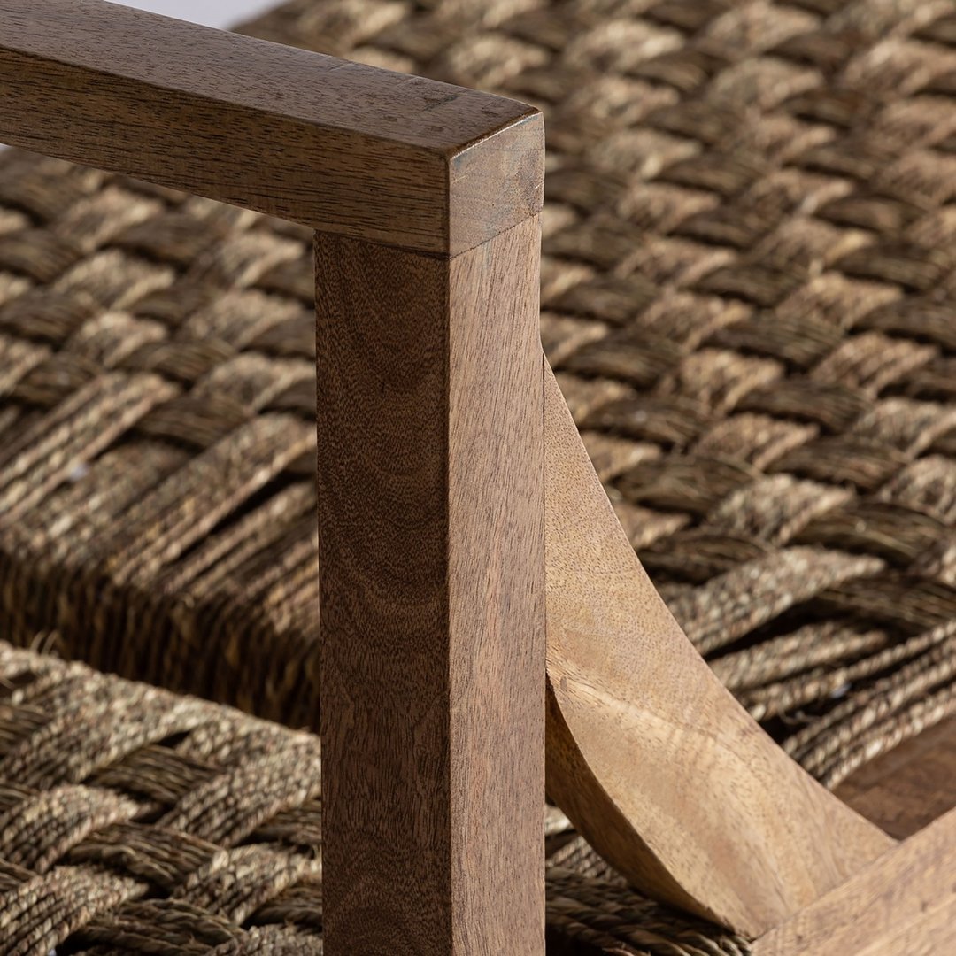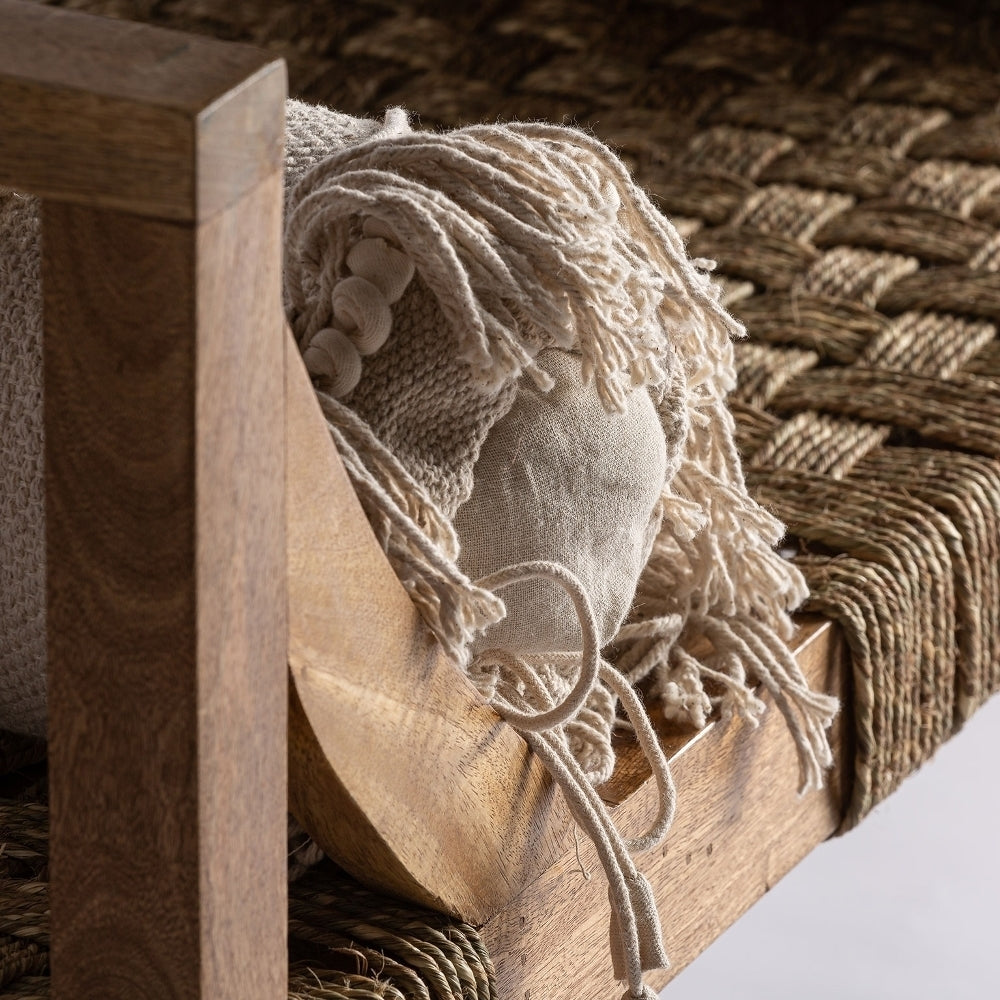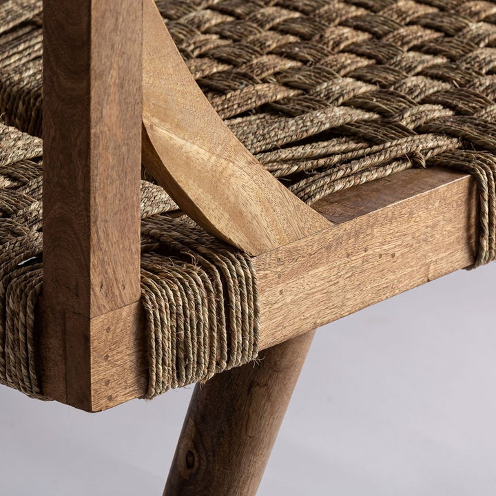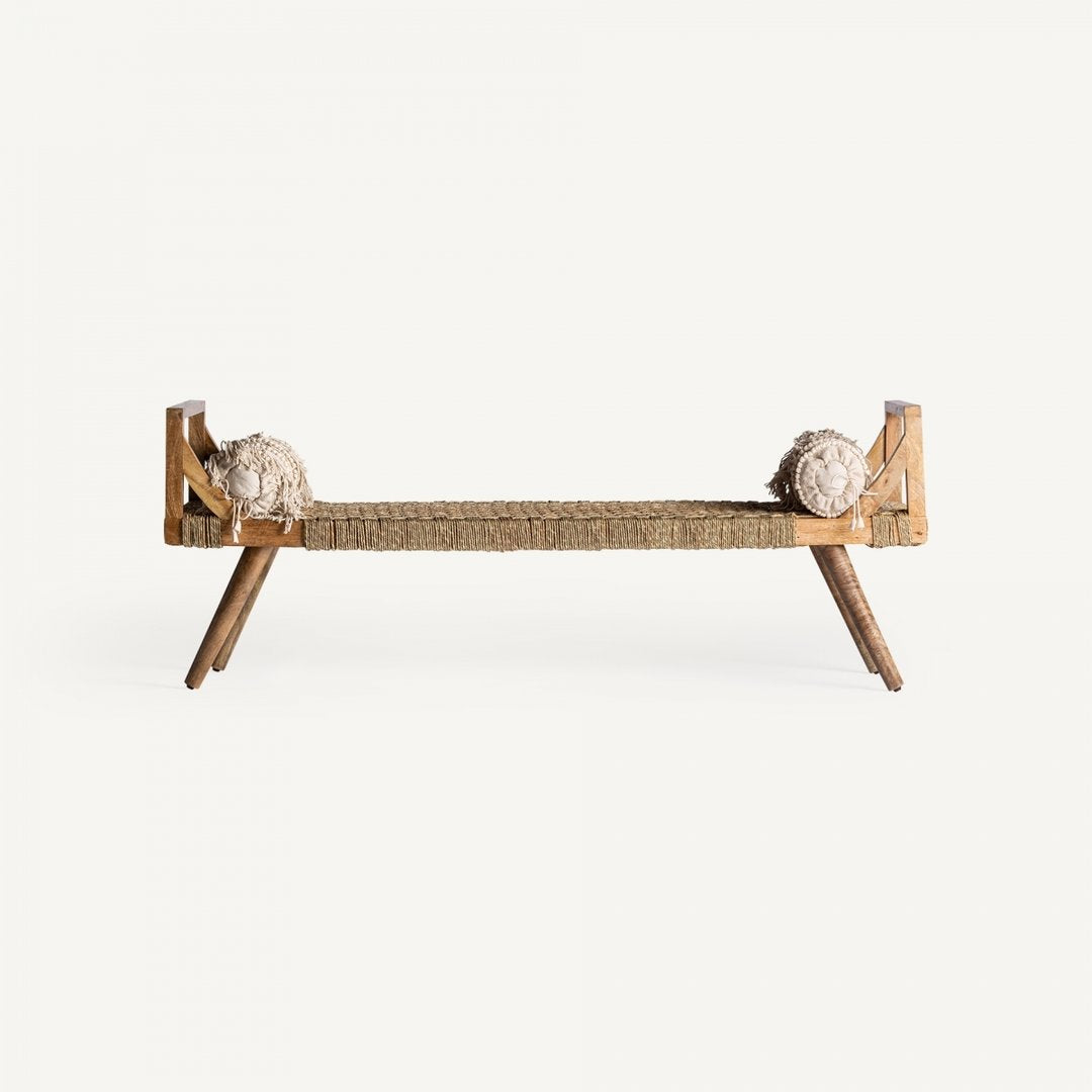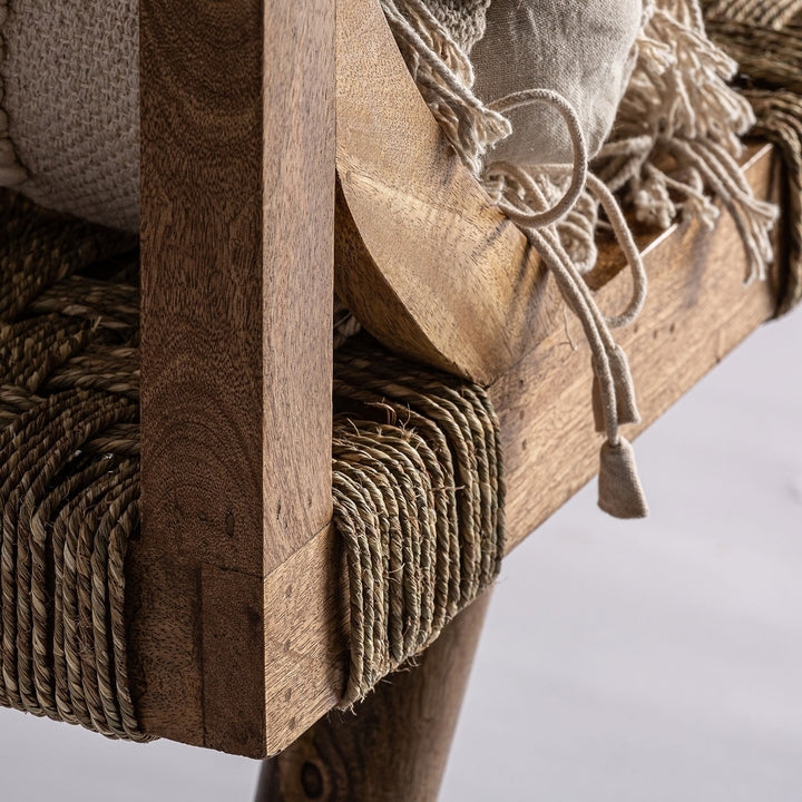 Uno stile coloniale che evoca la ricchezza e il calore dei paesaggi tropicali. La struttura robusta in legno di mango si fonde con la raffinata fibra naturale e il cotone, creando un'opera che è sia funzionale che di grande impatto visivo. La finitura in colore naturale e i cuscini accuratamente rifiniti sottolineano un'estetica che è semplice eppure lussuosa, perfetta per arricchire con un tocco esotico qualsiasi ambiente, da un interno in stile orientale a un terrazzo o un giardino.egno di mango, fibra naturale e cotone. Riscopri l'eleganza senza tempo con la nostra Panca Coloniale in Teak. Realizzata con il legno di mango di prima qualità e arricchita da fibre naturali e cotone, questa panca è un tributo alla maestria artigianale. Con un colore naturale che esalta la bellezza del materiale, si adatta magnificamente a una varietà di contesti decorativi. Dimensioni generose di 180 cm x 50 cm x H 68 cm e un peso di 17,6 kg la rendono sia resistente che elegante. I cuscini inclusi, con il loro finissaggio bordato su entrambi i lati e riempimento in espuma, aggiungono comfort e stile. Con un peso supportato fino a 150 kg, questa panca non è solo un sedile, ma un pezzo di conversazione. Perfetta per chi cerca mobili coloniali e orientali online, con parti facilmente smontabili per una pratica manutenzione. Dimensioni dettagliate come l'altezza del sedile da terra di 43 cm e quella dei braccioli di 70 cm assicurano una seduta confortevole. La panca viene fornita con le sue due soffici cuscini, completi di chiusura a lazo, per un comfort e uno stile ineguagliabili.