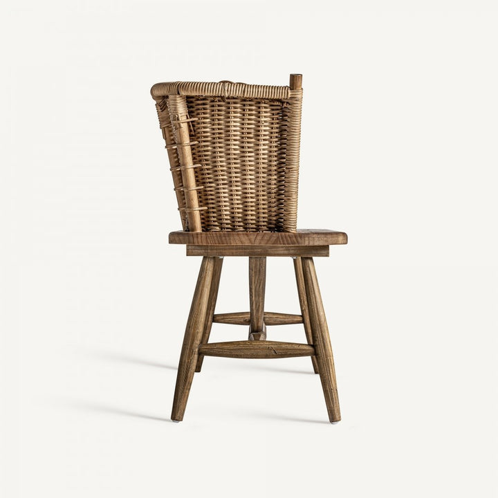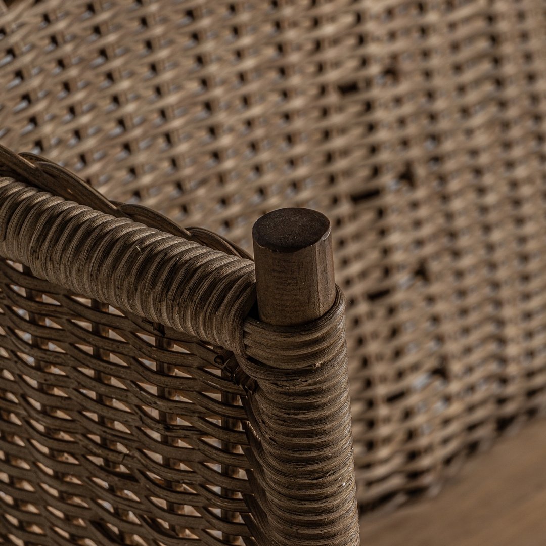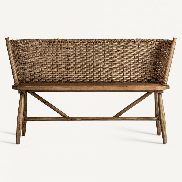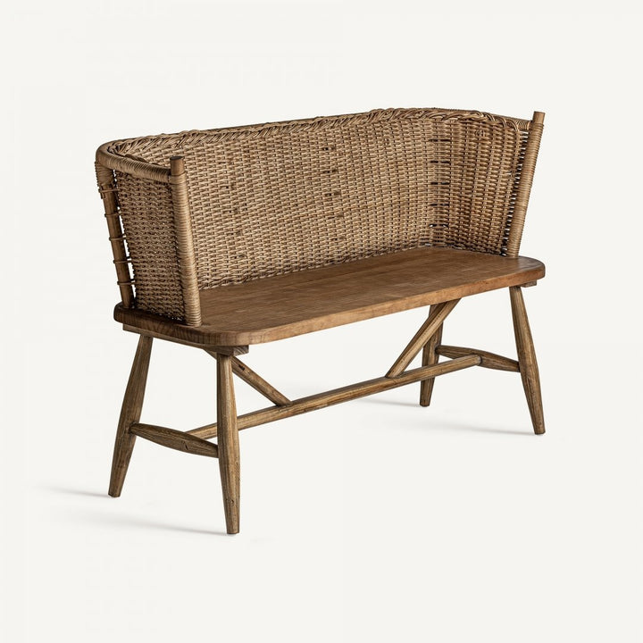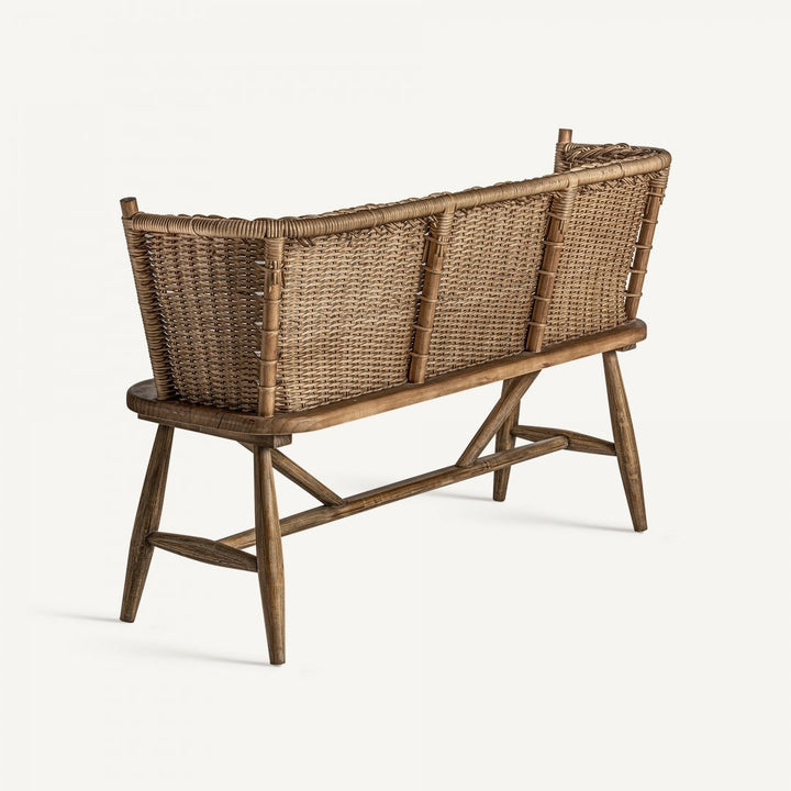 Il vimini intrecciato aggiunge un tocco di eleganza al divano, creando un contrasto affascinante con il legno di abete. Questo dettaglio di design lo rende un pezzo d'arredamento davvero unico e sofisticato.