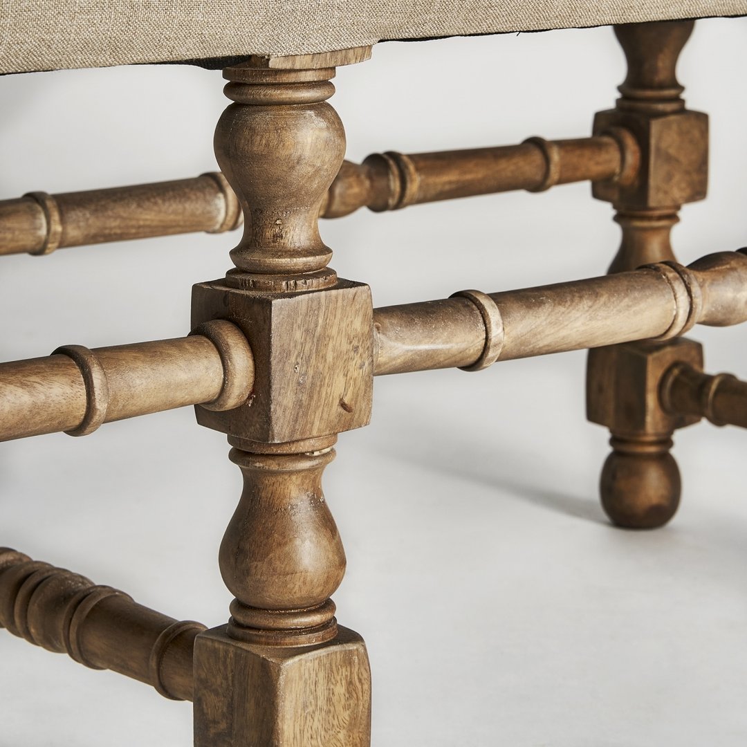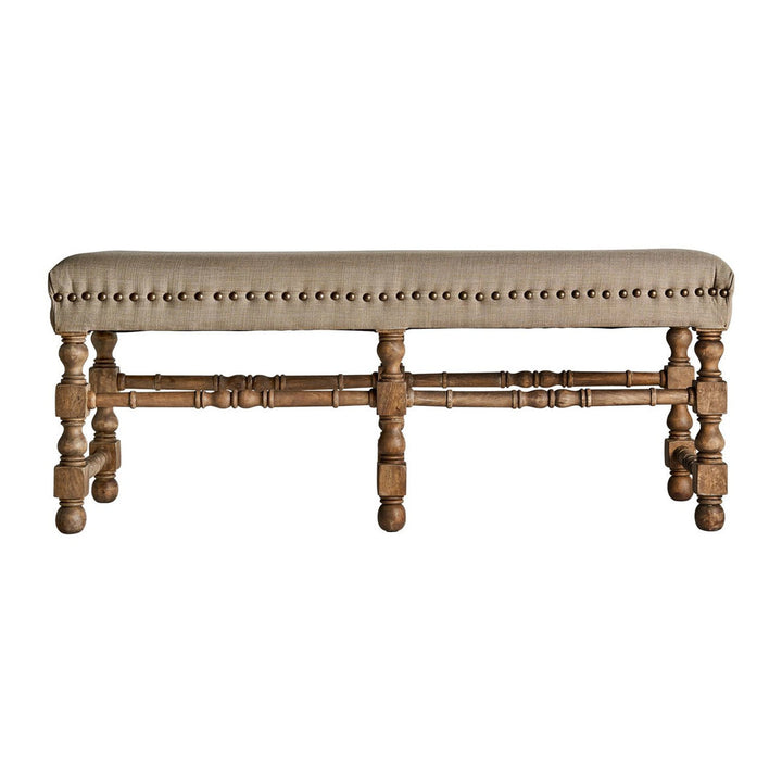 Panca francese country chic in Legno di Mango e Lino Naturale