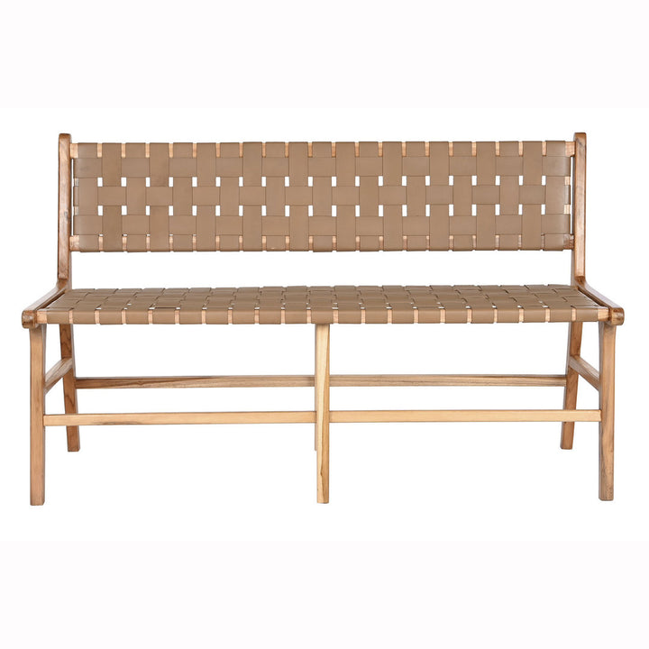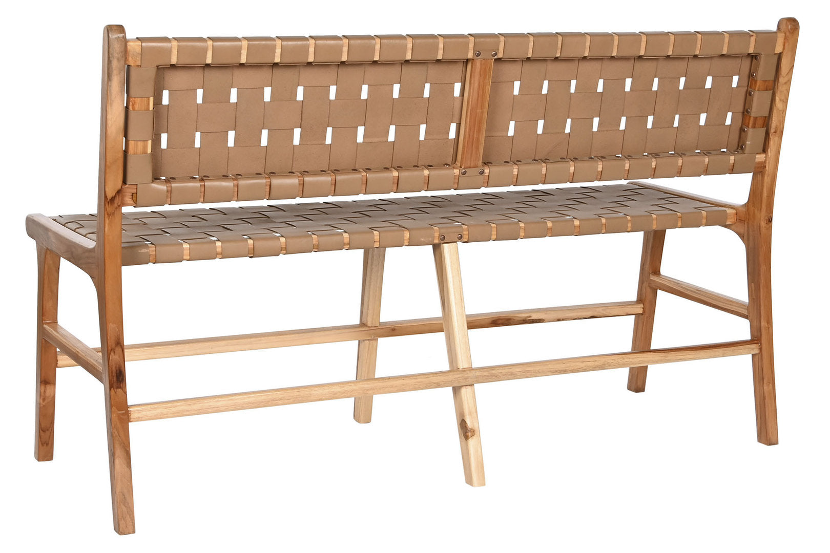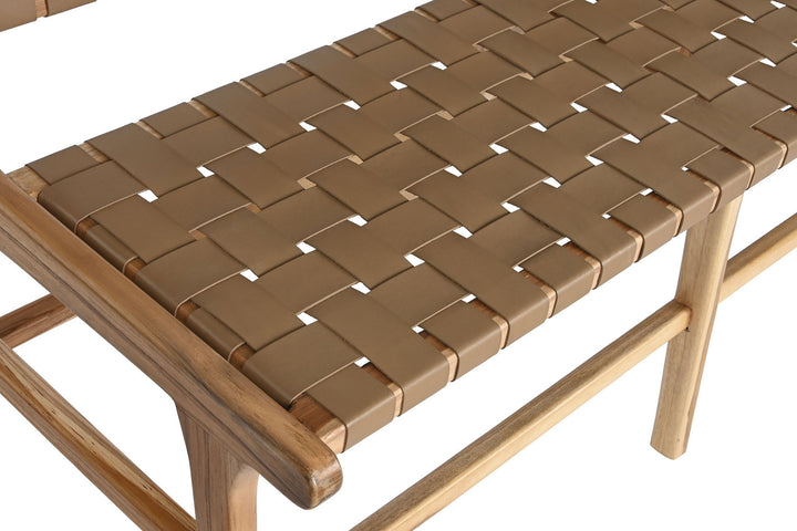 Panca Vintage in Pelle Intrecciata e Teak Naturale