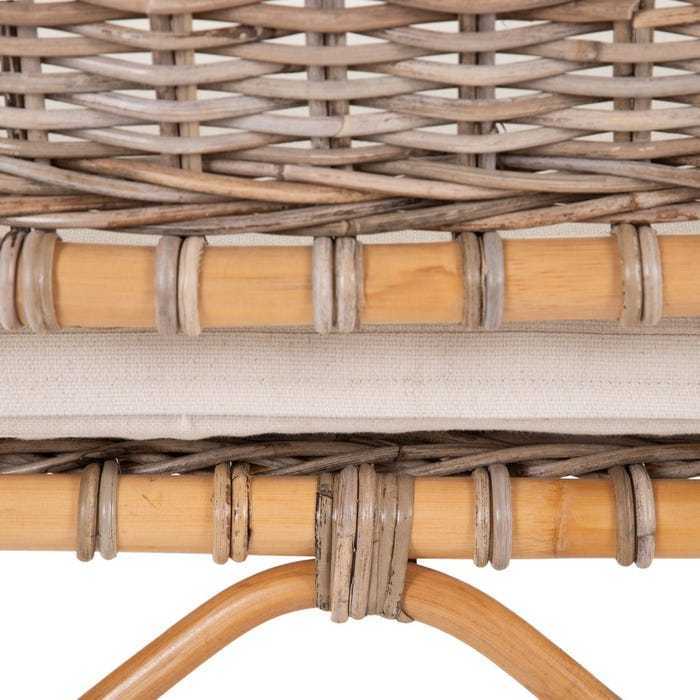 Realizzato con materiali di alta qualità, il divano presenta un design resistente e duraturo. L'altezza della seduta di 46 cm e la profondità di 50 cm offrono un comfort ottimale per sedersi e rilassarsi. Le gambe di 32,5 cm conferiscono stabilità e solidità al divano, mentre i braccioli di 15 cm offrono un ulteriore supporto. Lo schienale di 40 cm garantisce un comfort ergonomico durante l'utilizzo. I cuscini sono rivestiti con un tessuto di alta qualità composto al 30% di cotone, al 30% di lino e al 40% di poliestere, ed è possibile rimuoverli per una facile pulizia. L'imbottitura in schiuma con densità di 23 kg/m3 offre un'esperienza di seduta confortevole e morbida. Aggiungi un tocco di stile e comfort al tuo spazio con un divano naturale in rattan e legno. Acquistalo ora per creare un ambiente invitante e unico nella tua casa.