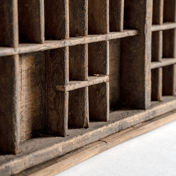 NOTE: Legno di recupero marrone. Peso 21,7 kg. Telaio 2,5 × 7 cm. Installazione verticale o orizzontale tramite anillas. Prodotto artigianale: variazioni di tono, forma e superfici sono caratteristiche del materiale naturale.