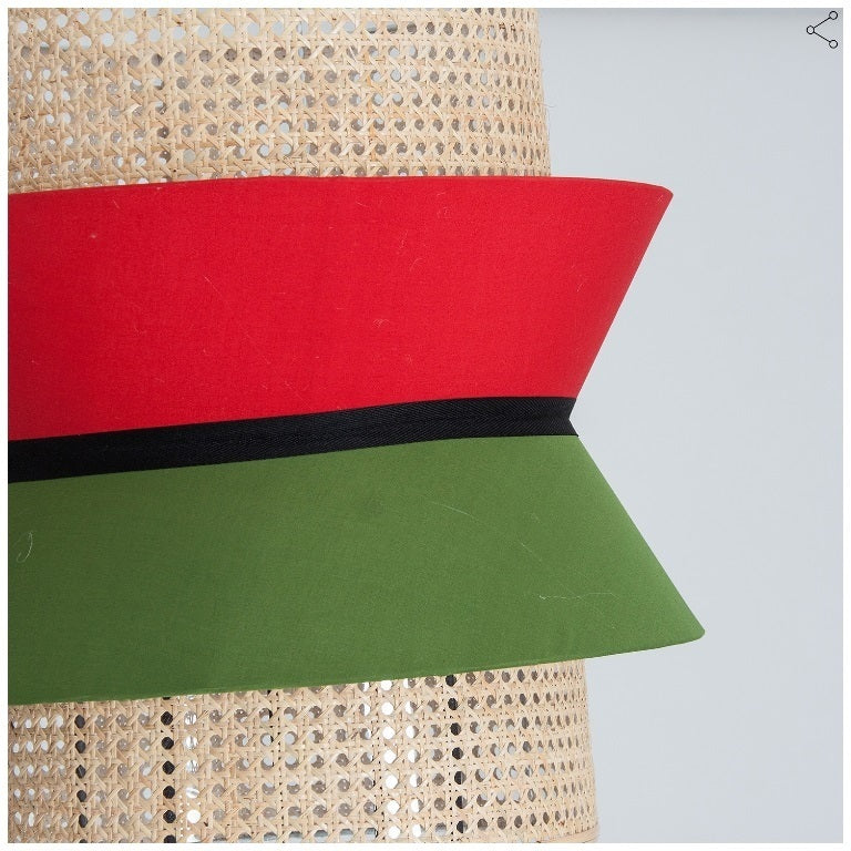 ferro, rattan e cotone verde rosso