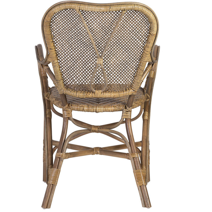 Realizzata con cura artigianale e caratterizzata da una struttura in bambù e rattan naturale dal delicato colore miele, questa sedia è un capolavoro di eleganza e artigianato.
