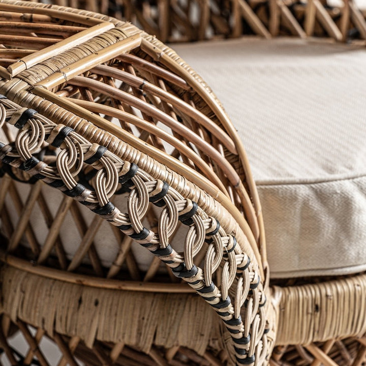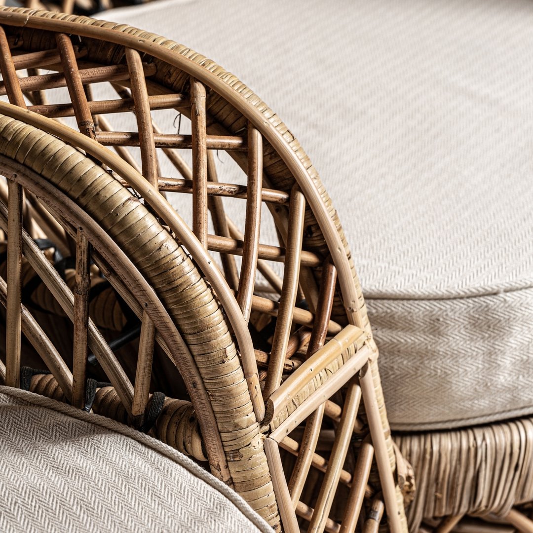 Materiali di Alta Qualità: Realizzato in rattan e algodón, il nostro sofà è sinonimo di stile e resistenza. La struttura è progettata per sostenere un peso fino a 150 kg, garantendo una lunga durata.
