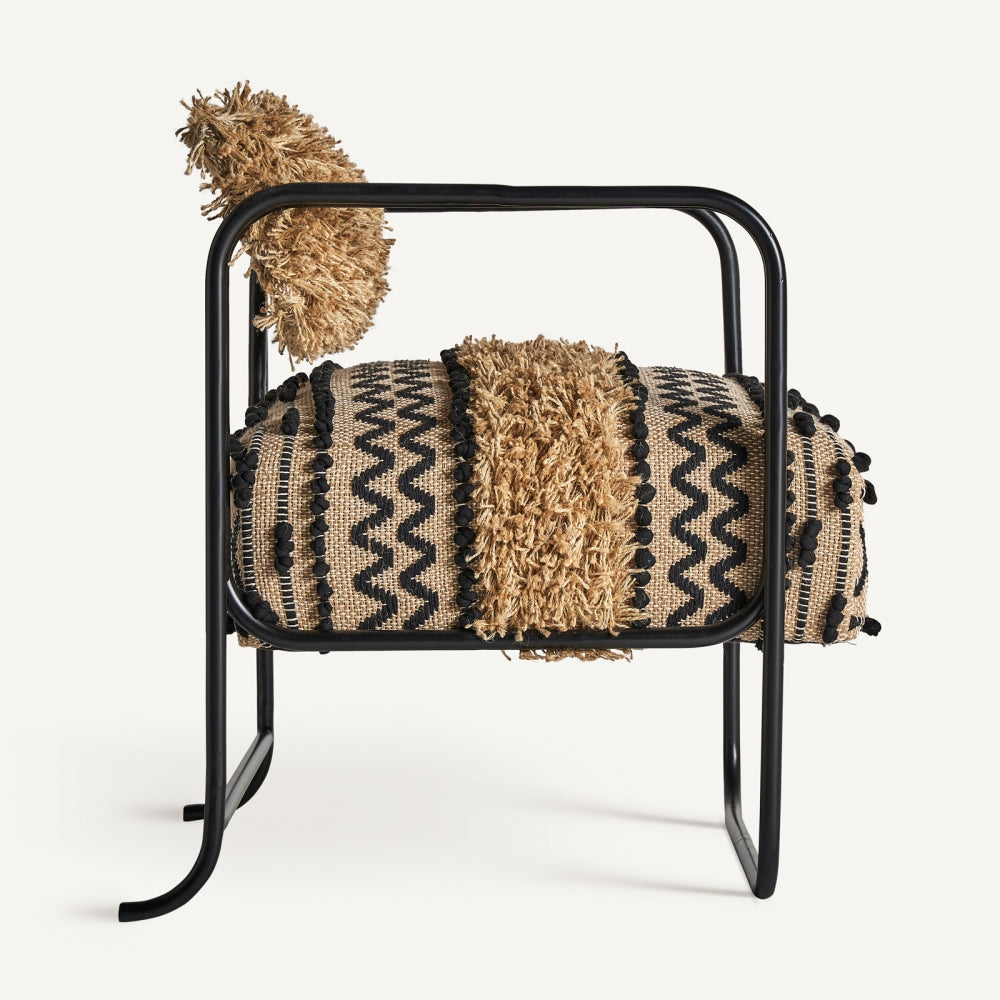 Lo stile vintage kilim è un’opzione ideale per chi desidera arredare la propria casa con un tocco di eleganza retrò e materiali unici. Questa poltrona, combinando il tessuto in juta e la struttura in metallo, offre una soluzione di arredo che si distingue per il suo design raffinato e la sua funzionalità. Perfetta per chi cerca una poltrona vintage online che aggiunga personalità al soggiorno o all’angolo lettura, le sue dimensioni di 64 x 67,5 x 72 cm e un peso di 14,2 kg la rendono ideale per qualsiasi ambiente. La seduta di 56 x 48 x 24 cm, l’altezza da terra di 46 cm e l’altezza dal pavimento al bracciolo di 66 cm garantiscono un comfort ottimale. Supportando un peso fino a 120 kg, questa poltrona è perfetta per chi cerca un pezzo unico e resistente. Acquistare questa poltrona significa scegliere un arredo di qualità che unisce estetica e durabilità.
