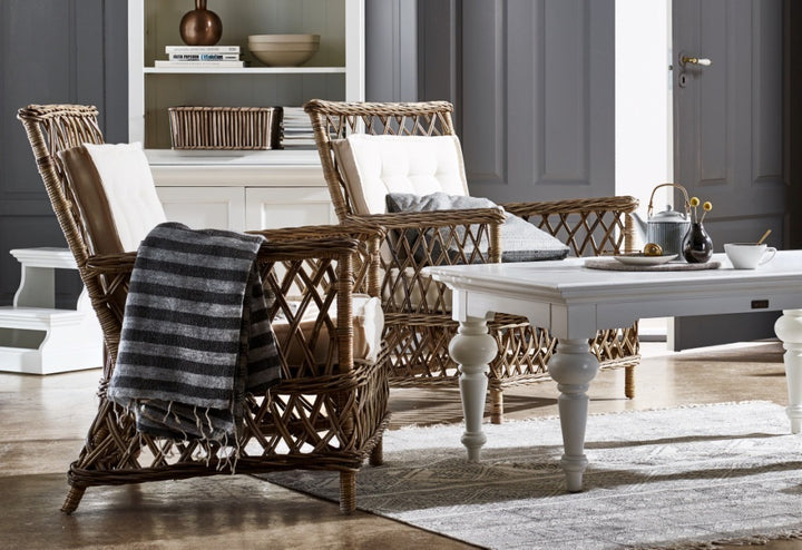 Poltrona in rattan con 2 cuscini