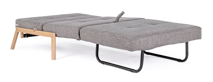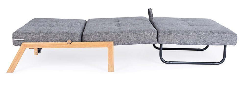 L'imbottitura a doppio strato di schiuma poliuretanica offre un comfort eccezionale sia durante la seduta che come letto. Il rivestimento in tessuto grigio di alta qualità si abbina facilmente a una varietà di stili di arredamento.