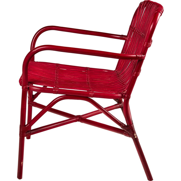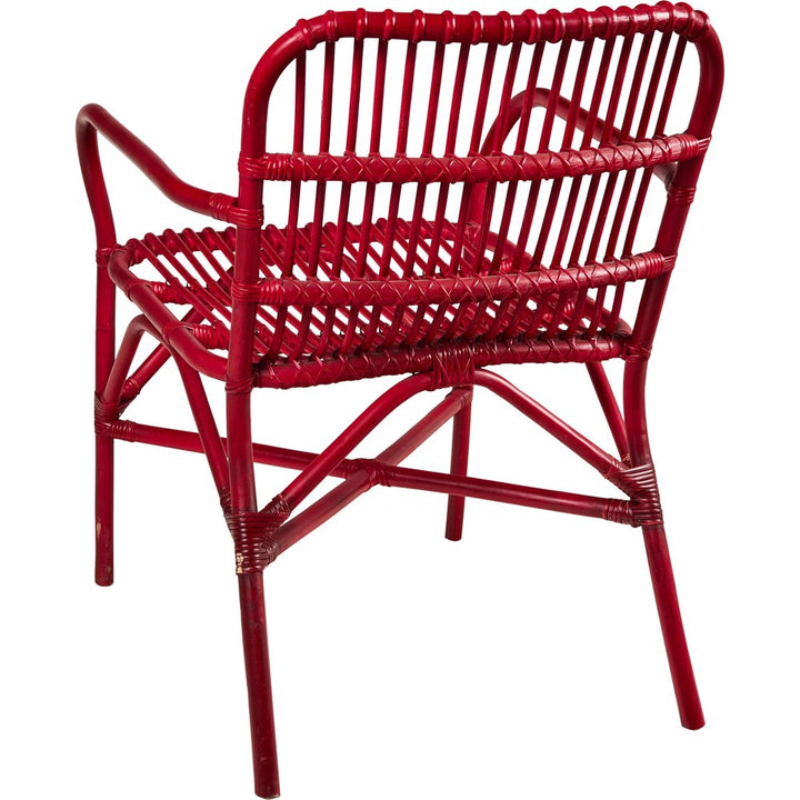 NOTE: Rattan naturale verniciato rosso, uso interno/esterno coperto, lavorazione artigianale, seduta leggera e decorativa.