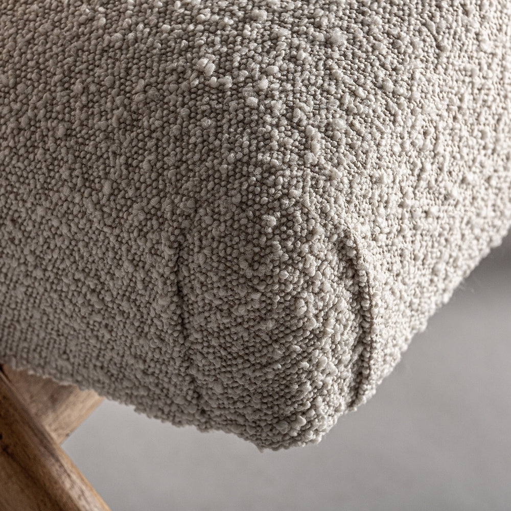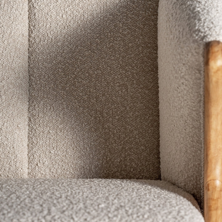 Sinonimo di comfort, morbidezza e disinvoltura, la poltrona Prati è realizzata in cotone bouclé e legno di pino, due tendenze decollate lo scorso anno e quest'anno di gran moda per quegli angoli speciali della casa.