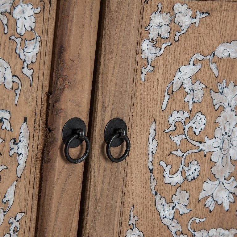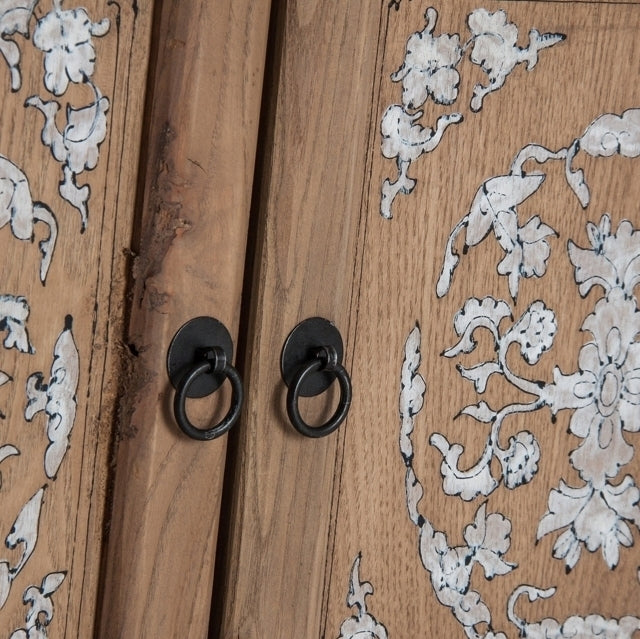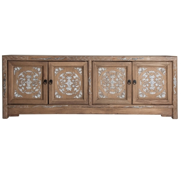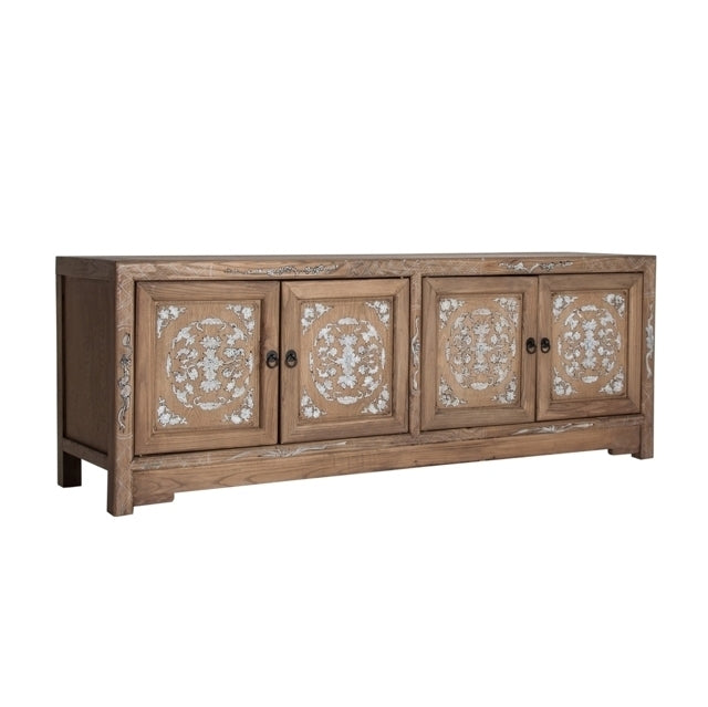 Il design etnico del mobile tv dipinto in legno naturale è perfetto per creare un'atmosfera accogliente e rilassante nella stanza. L'attenzione per i dettagli e la sua realizzazione artigianale rendono questo mobile un'aggiunta meravigliosa a qualsiasi ambiente.