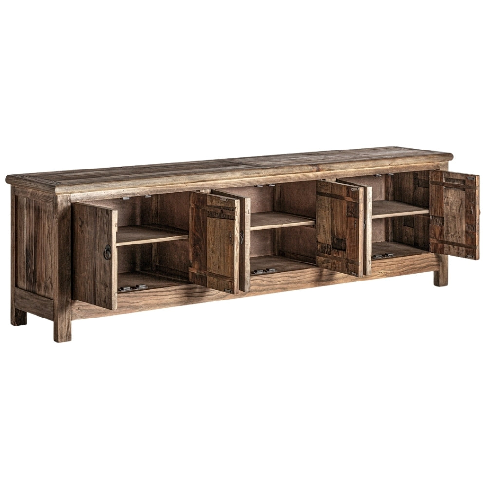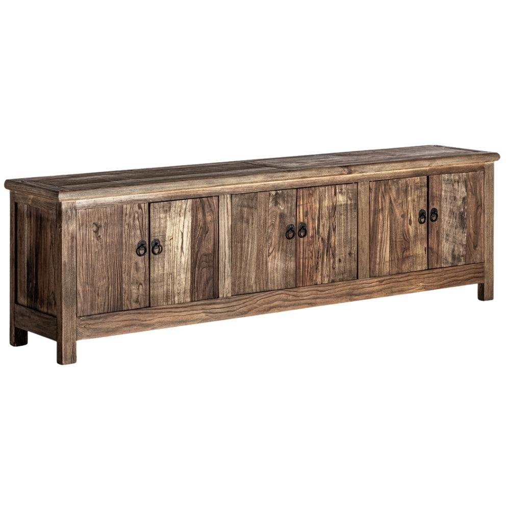 Lo stile orientale etnico è la scelta ideale per chi desidera un ambiente caldo e accogliente, caratterizzato da mobili dal fascino senza tempo. Questo porta TV tibetano è un pezzo unico, realizzato artigianalmente in legno di olmo riciclato con finitura marrone naturale invecchiato. La struttura solida e resistente esalta le venature del legno, rendendo ogni dettaglio autentico e inimitabile. Le dimensioni di 230 x 45 x 65 cm lo rendono perfetto per arredare ampi spazi living in stile etnico. Dotato di 6 ante e 3 ripiani fissi, offre ampio spazio per dispositivi elettronici, accessori e oggetti decorativi. Con una capacità di carico fino a 80 kg, questo mobile TV coniuga funzionalità e design. Ideale per soggiorni e salotti in stile etnico orientale, questo mobile in legno è una soluzione perfetta per chi ama un arredamento esclusivo e naturale.