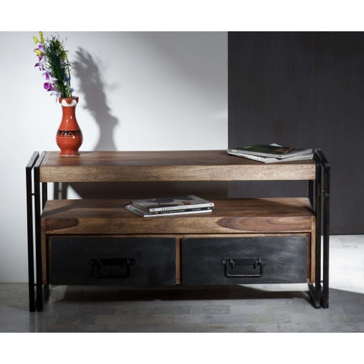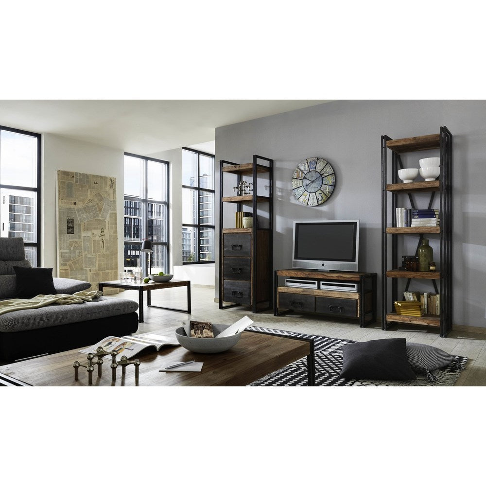 Porta TV Etnico Industrial in Legno di Acacia e Ferro