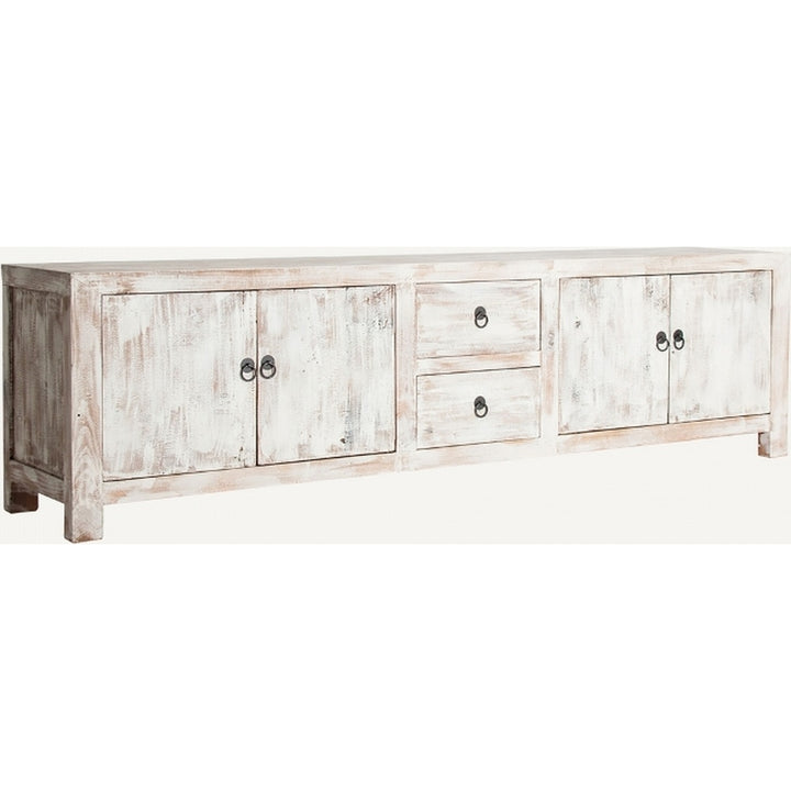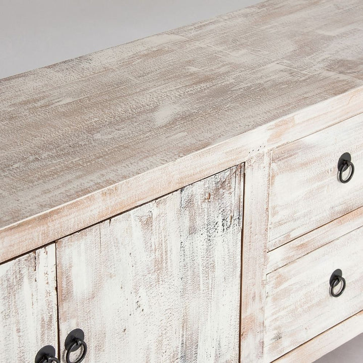 Mobile Porta TV Provenzale in Legno di Pino Riciclato Bianco Slavato