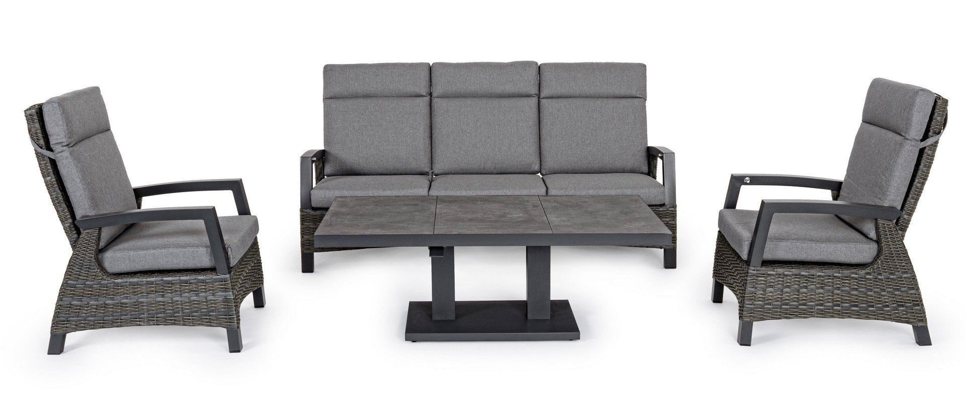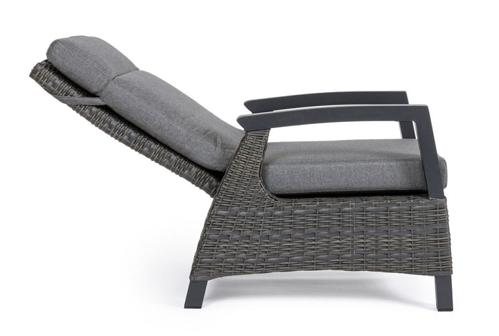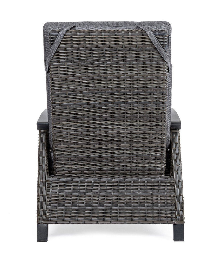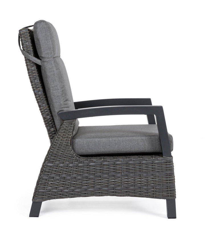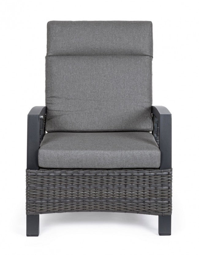Nel panorama dell'arredo esterno, la poltrona da giardino reclinabile si distingue per il suo ineguagliabile connubio tra design e funzionalità, rispondendo perfettamente alle ricerche di mobili da giardino e arredo giardino di qualità. Questo articolo, realizzato in acciaio e rattan sintetico di colore antracite, misura 73 x 83 H 103 cm, offrendo una soluzione ideale per chi cerca comfort e stile nell'arredamento esterno. La struttura in alluminio, verniciata a polvere di poliestere, garantisce durabilità e resistenza agli agenti atmosferici, mentre l'intreccio in fibra sintetica, oltre ad essere esteticamente piacevole, assicura una manutenzione ridotta. Il punto di forza di questa poltrona è lo schienale reclinabile, che permette di trovare la posizione perfetta per ogni momento di relax. I cuscini sfoderabili, realizzati in tessuto Olefin (100% polipropilene), offrono un ulteriore livello di comfort, rendendo ogni seduta un'esperienza unica. Con un peso di 14 kg e dettagli ergonomici come l'altezza della seduta di 44 cm e quella dei braccioli di 61,5 cm, questa poltrona rappresenta l'ideale per chi ricerca arredi da giardino funzionali e di design.