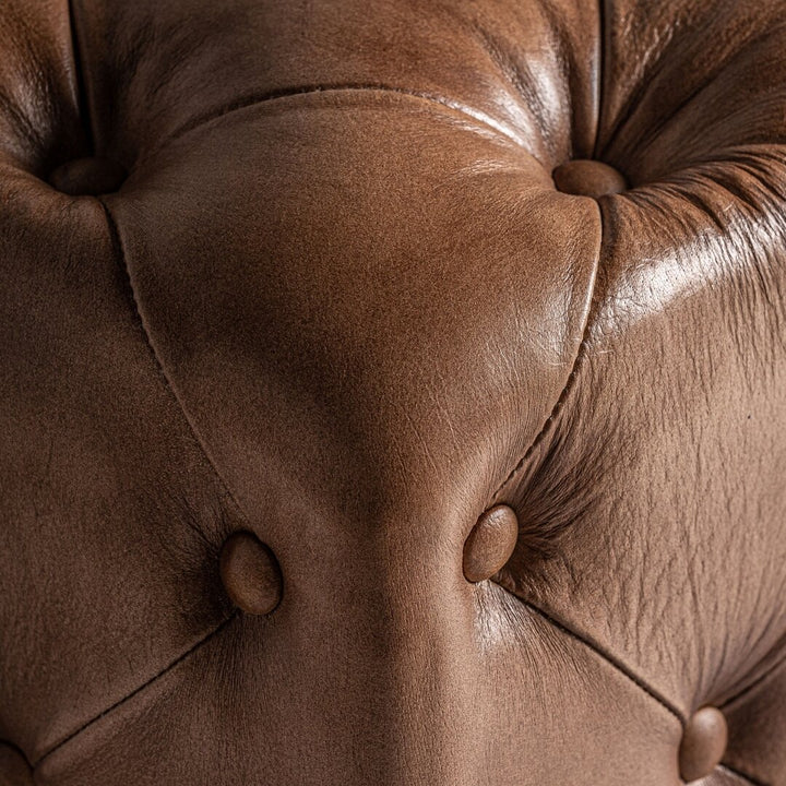 Realizzato in pelle marrone, questo pouf offre un’estetica lussuosa e una texture morbida al tatto. L’imbottitura in schiuma garantisce un comfort ottimale, mentre la lavorazione artigianale con bottoni rivestiti esalta il suo fascino classico. Perfetto come seduta aggiuntiva, poggiapiedi o elemento decorativo, si adatta a salotti, lounge bar e spazi dallo stile ricercato. La struttura solida assicura resistenza e durata nel tempo, rendendolo un accessorio funzionale ed elegante.